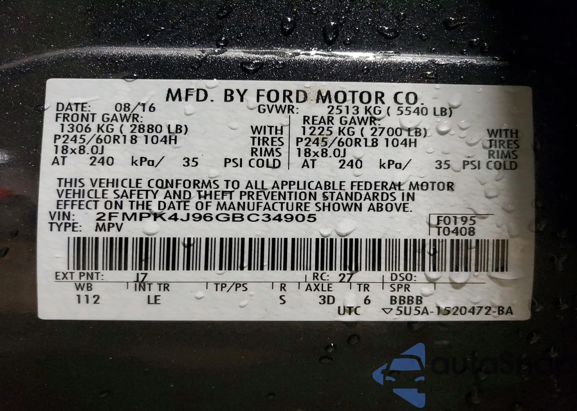 VIN: 2FMPK4J96GBC34905