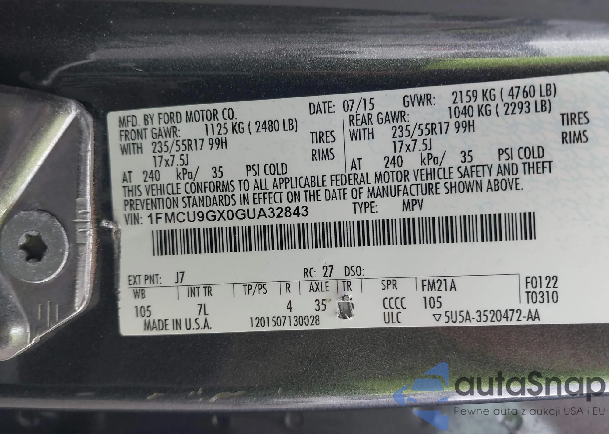 VIN: 1FMCU9GX0GUA32843