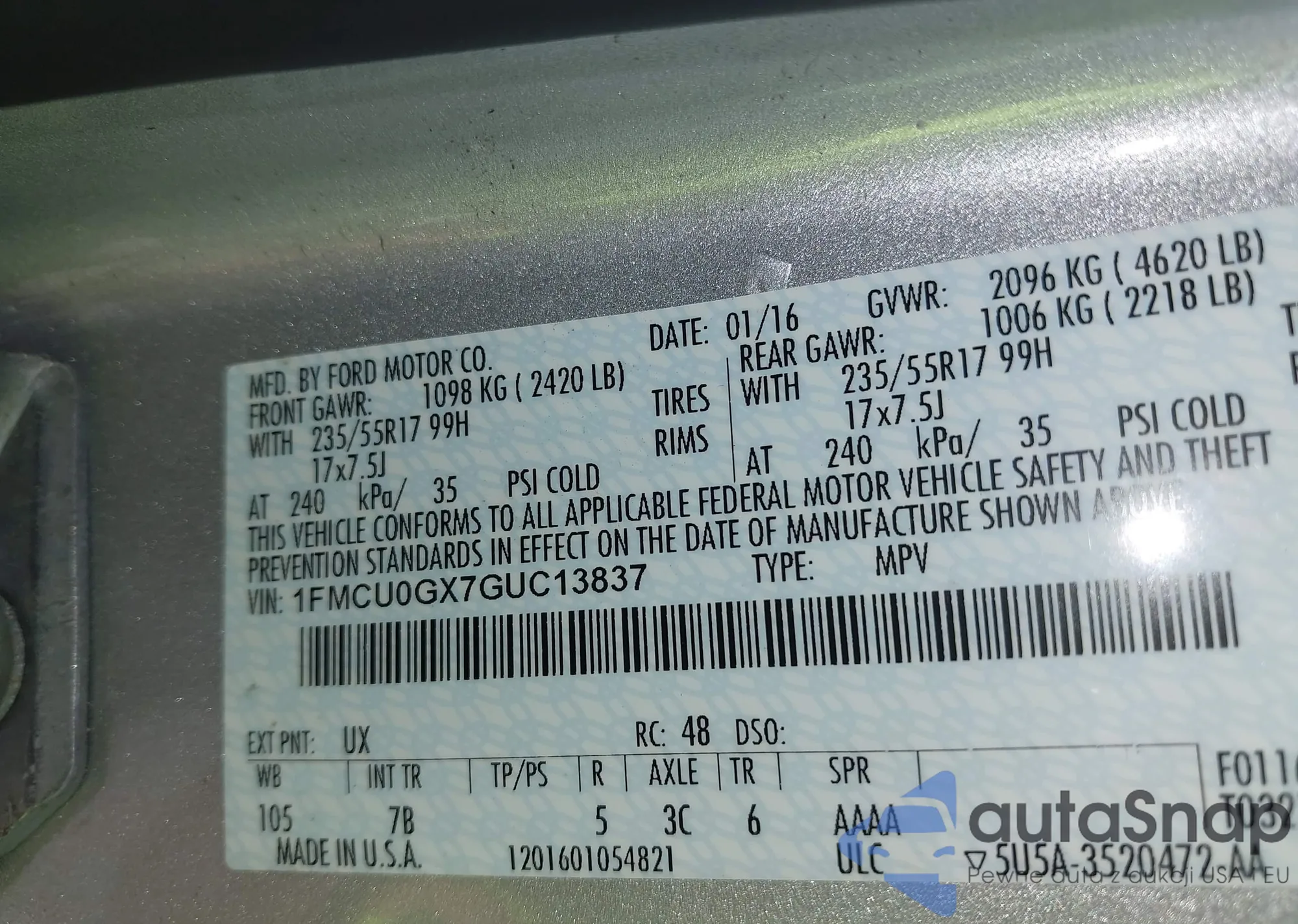 VIN: 1FMCU0GX7GUC13837