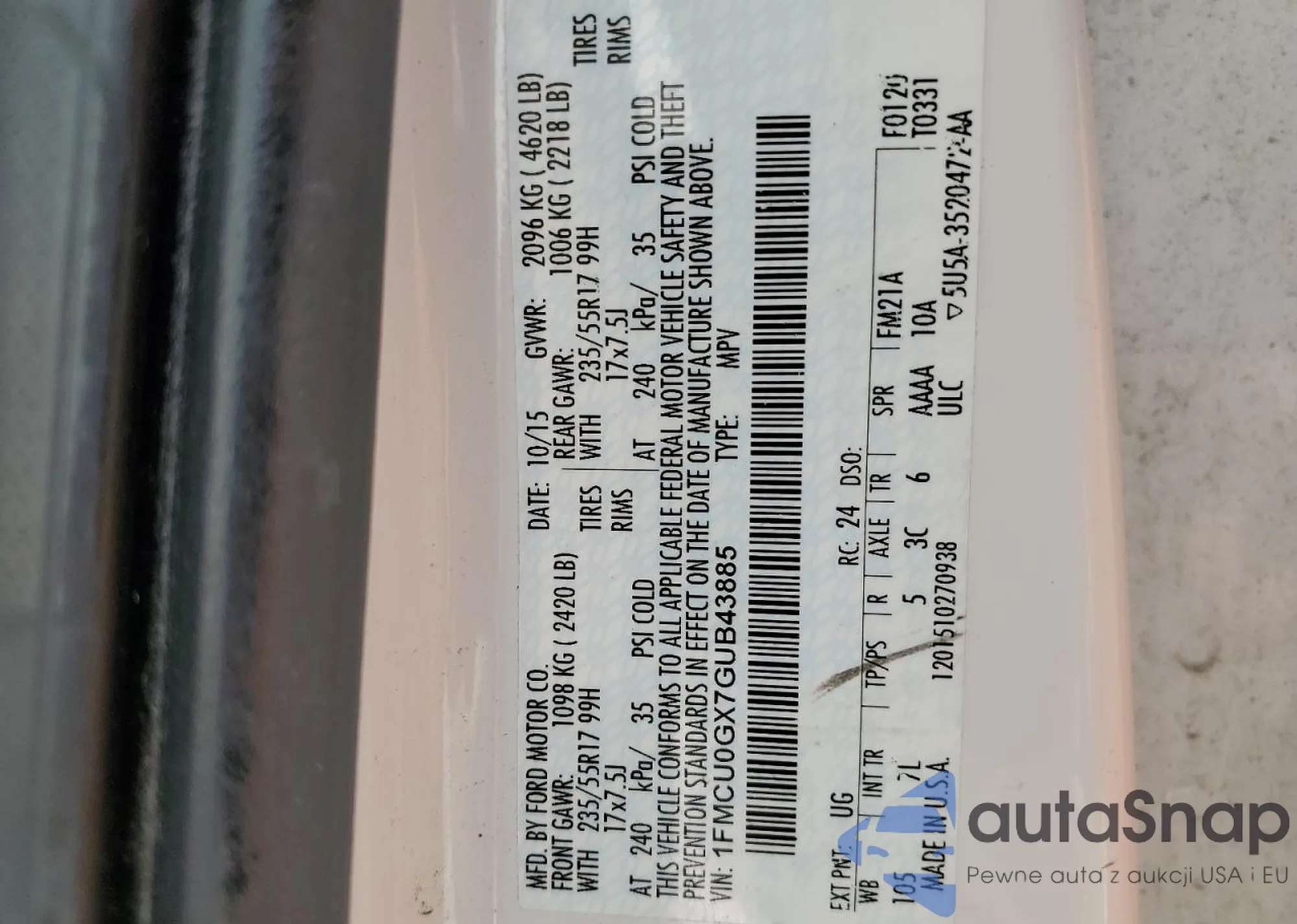 VIN: 1FMCU0GX7GUB43885
