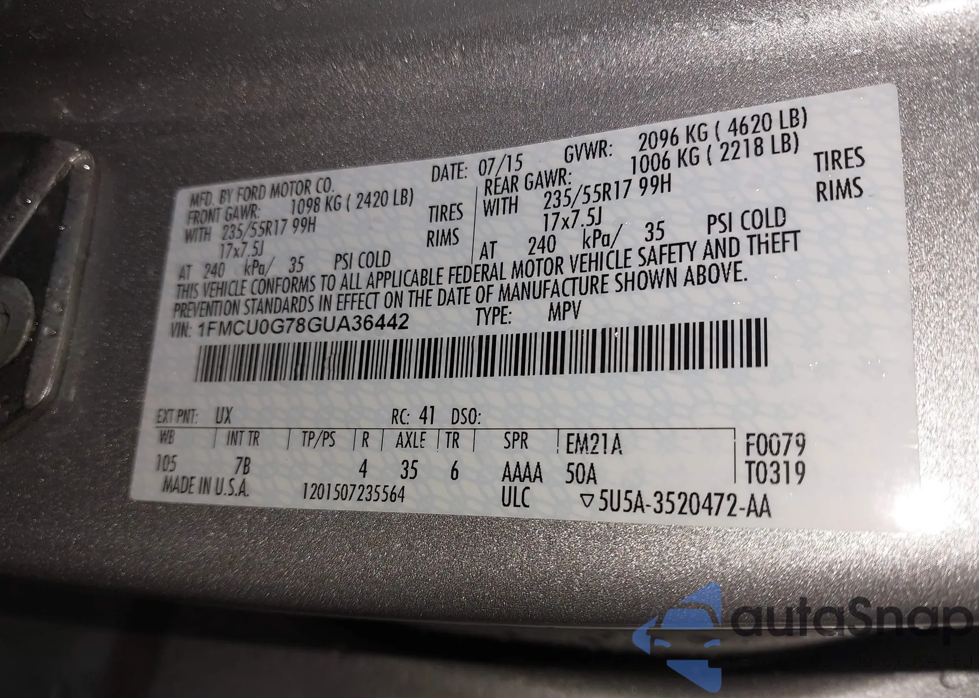 VIN: 1FMCU0G78GUA36442