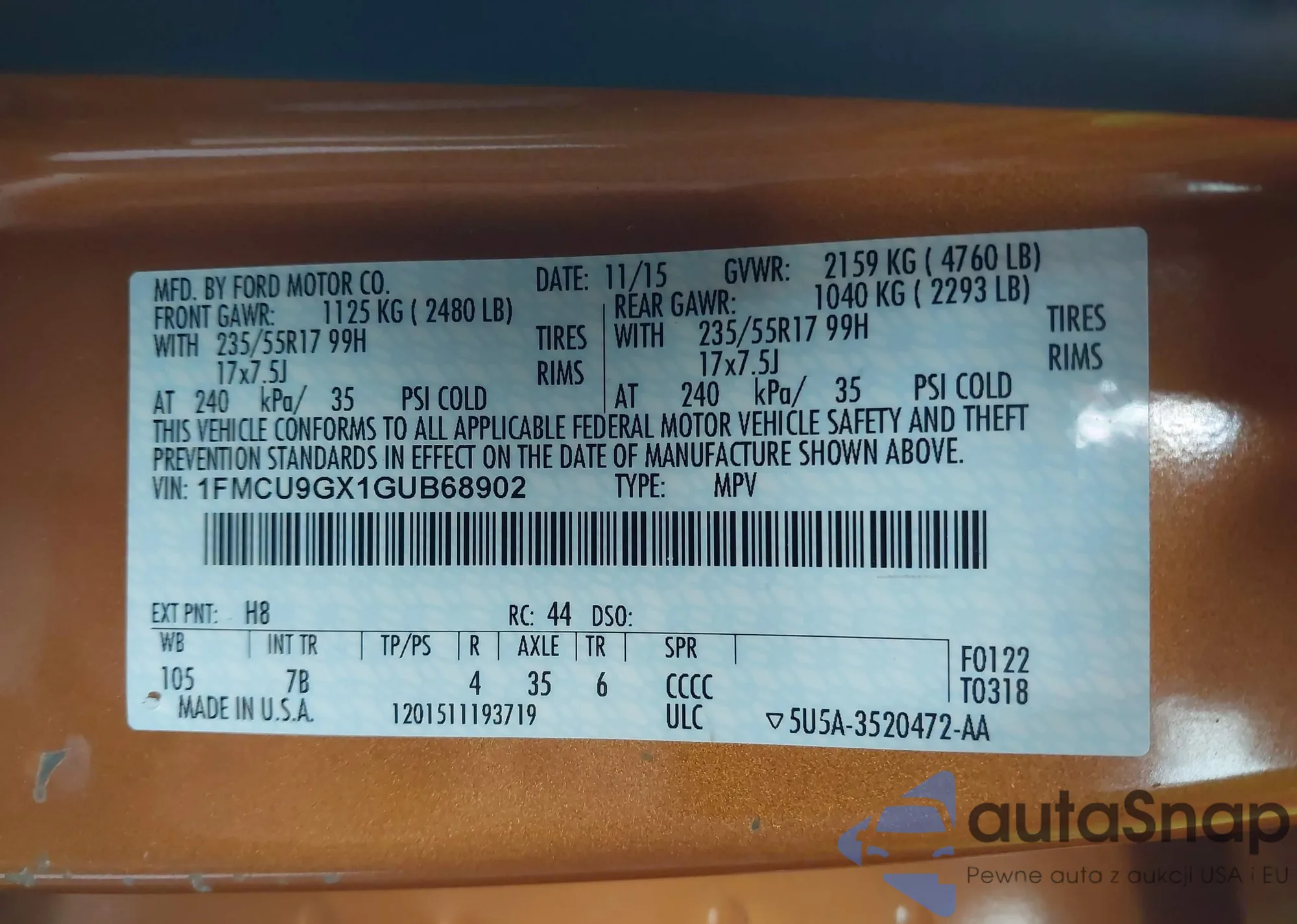 VIN: 1FMCU9GX1GUB68902