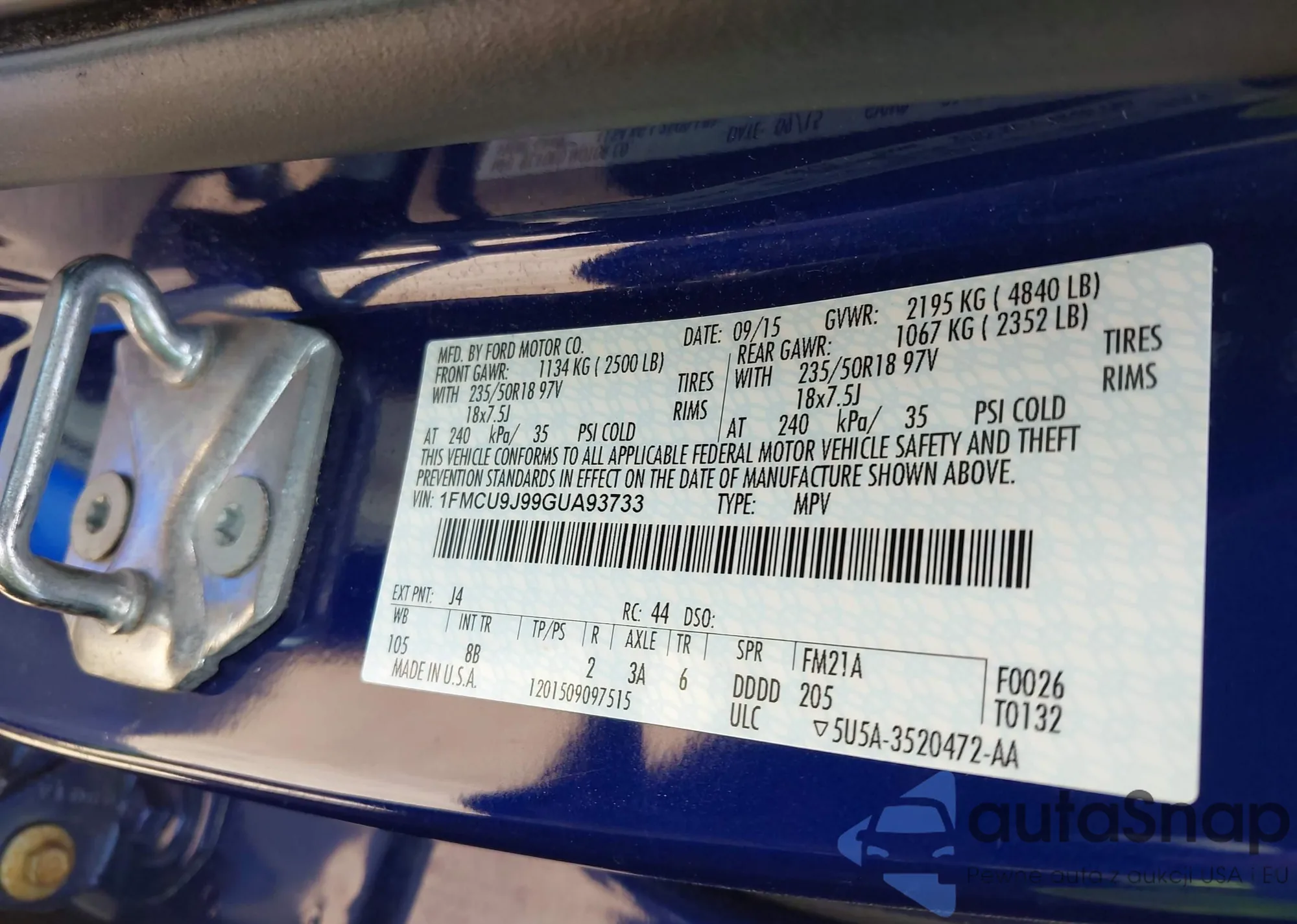 VIN: 1FMCU9J99GUA93733