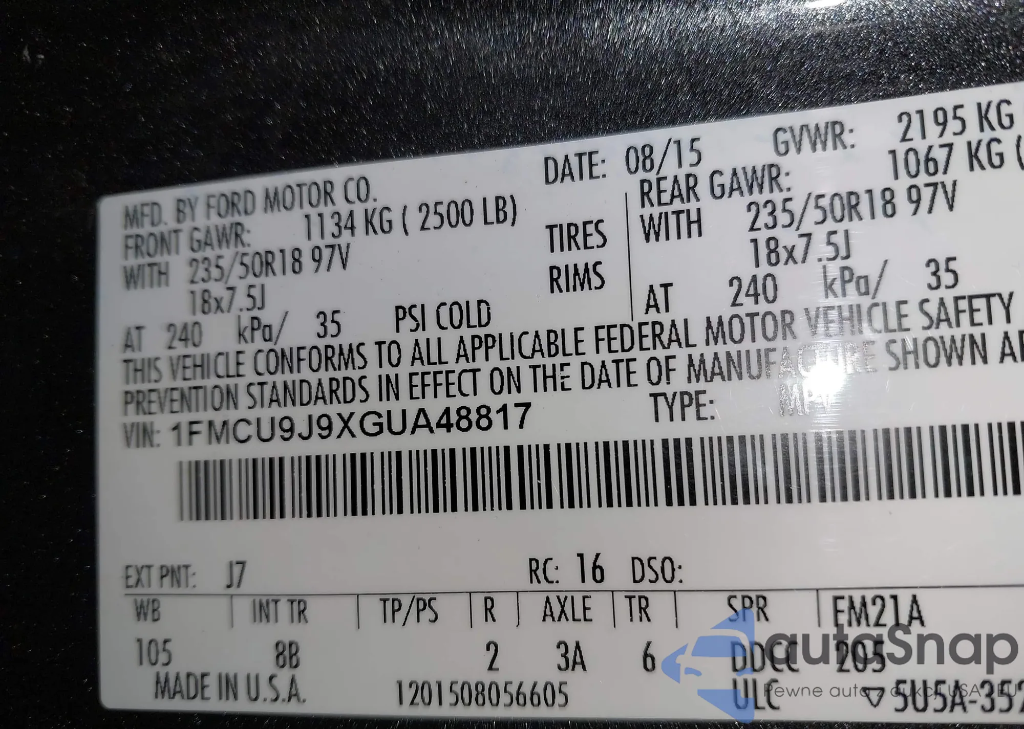 VIN: 1FMCU9J9XGUA48817