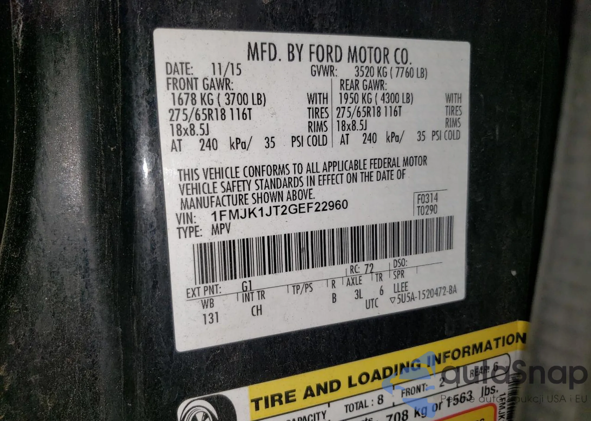 VIN: 1FMJK1JT2GEF22960