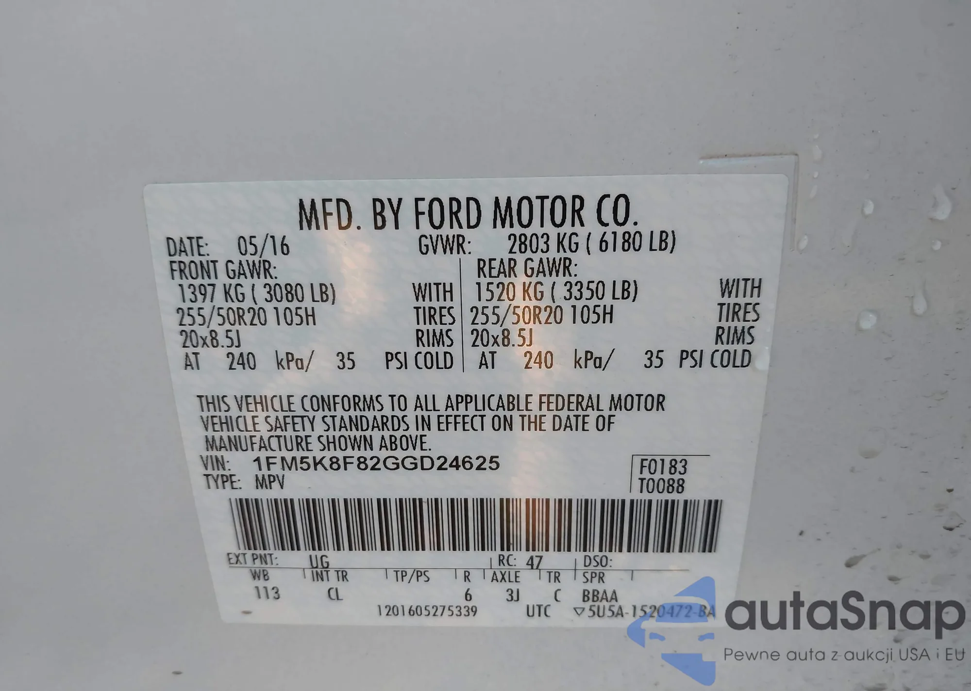 VIN: 1FM5K8F82GGD24625