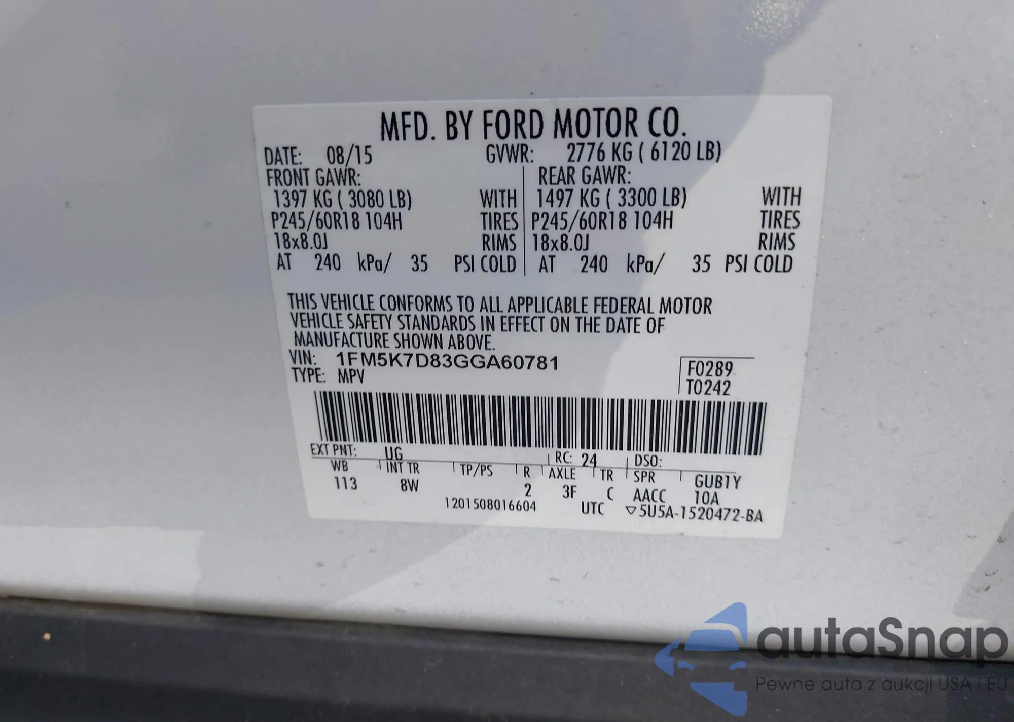 VIN: 1FM5K7D83GGA60781