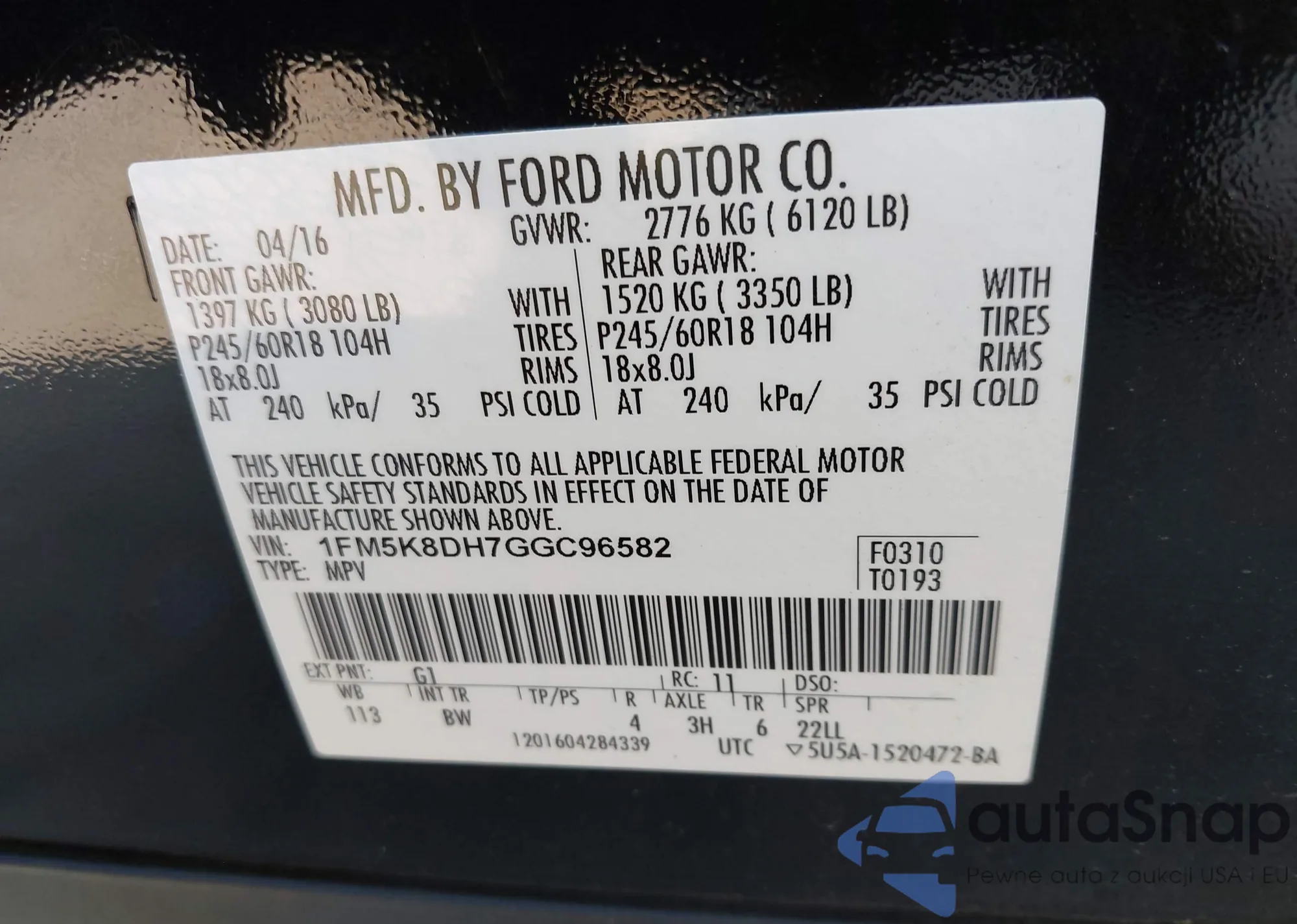 VIN: 1FM5K8DH7GGC96582