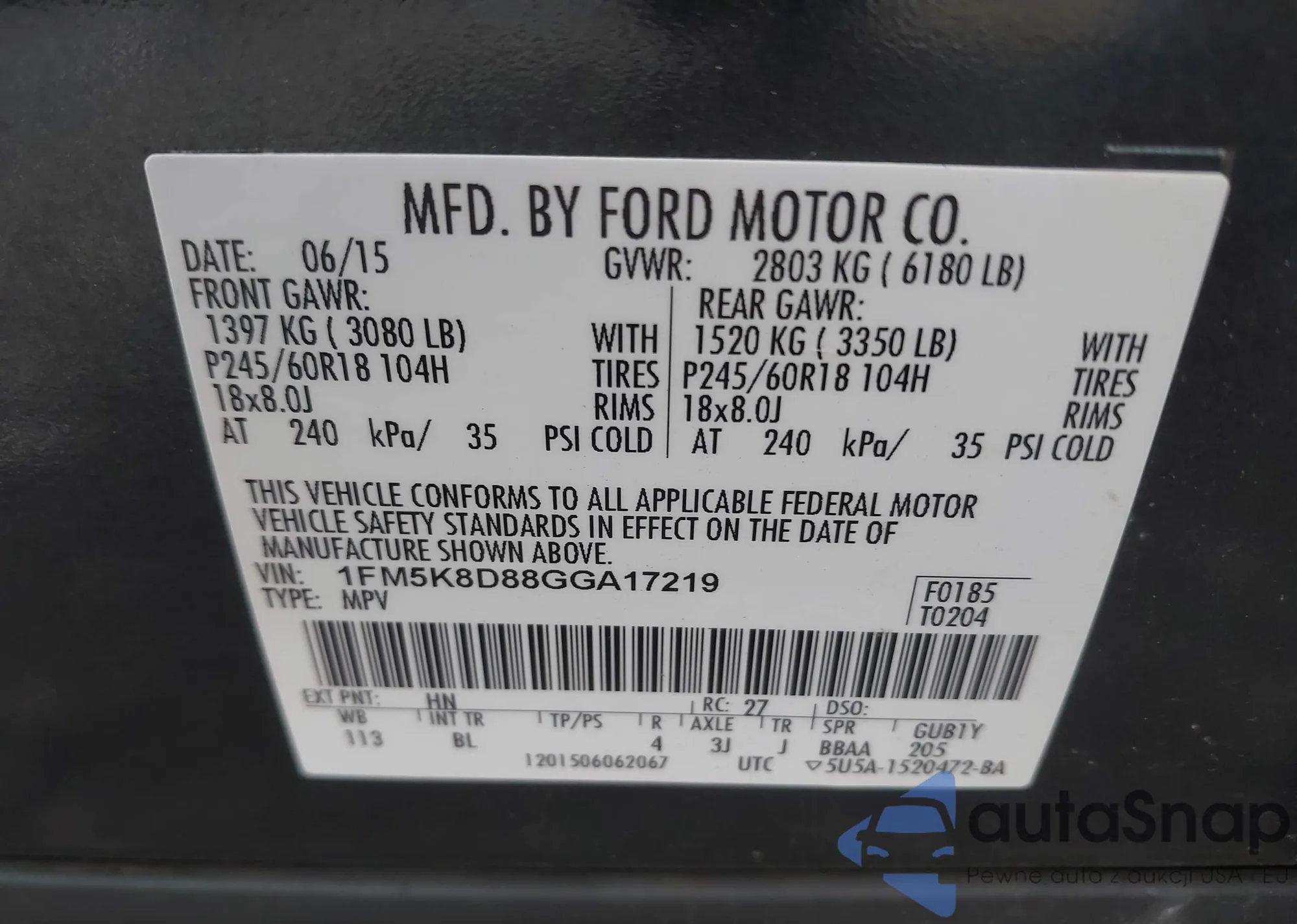 • VIN: 1FM5K8D88GGA17219