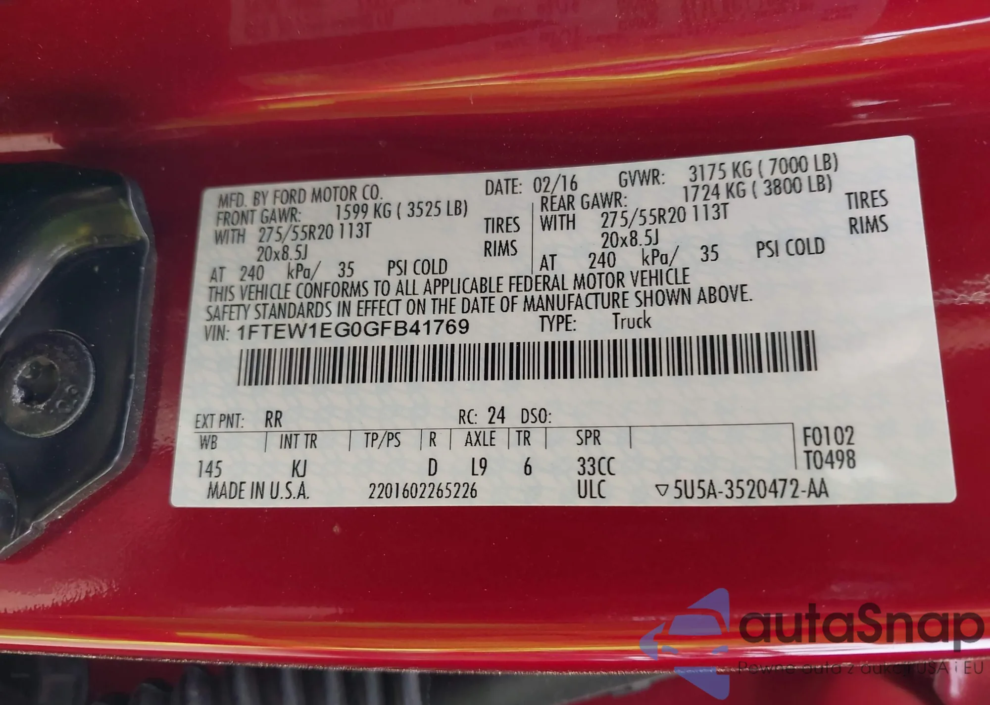 VIN: 1FTEW1EG0GFB41769