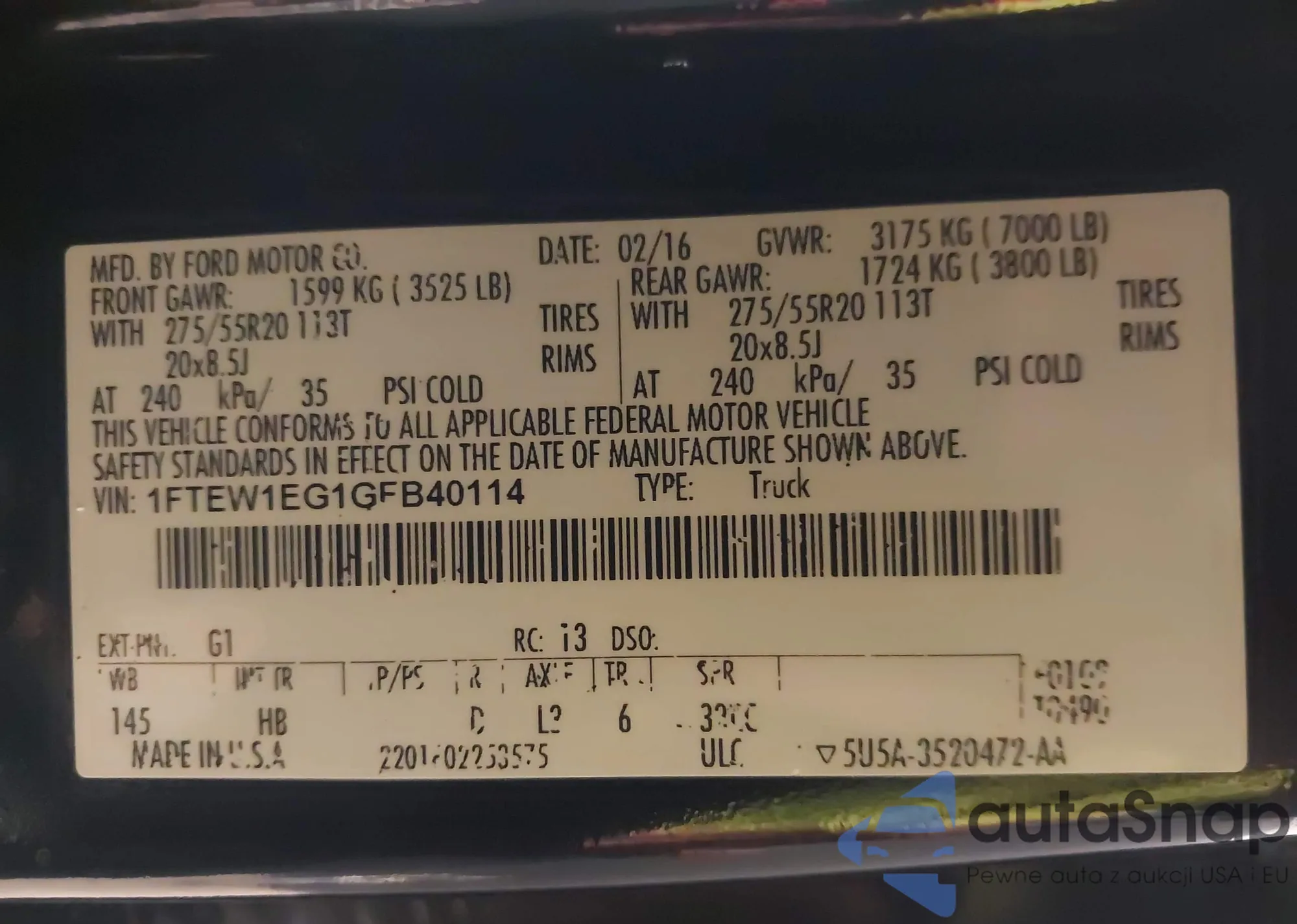 VIN: 1FTEW1EG1GFB40114