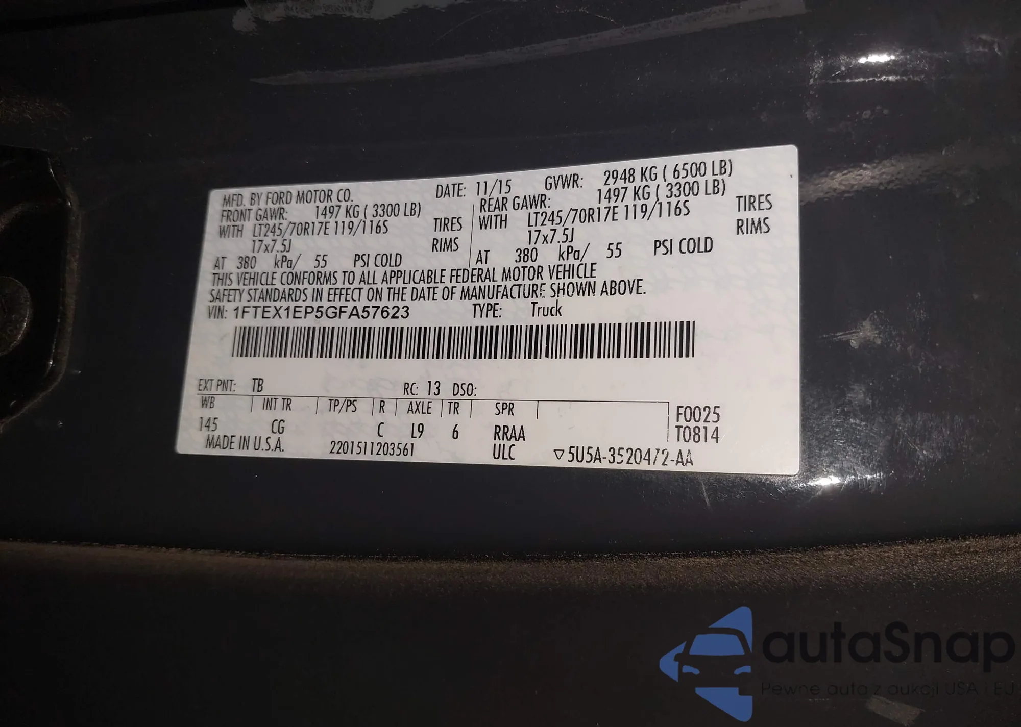 The car Ford F-150 2016 (VIN 1FTEX1EP5GFA57623) has not been auctioned before. The documents are clean, and the mileage matches or is below the market average. Sold by an insurance company – we recommend purchase. Delivery to the port will take approx. 6–8 weeks.