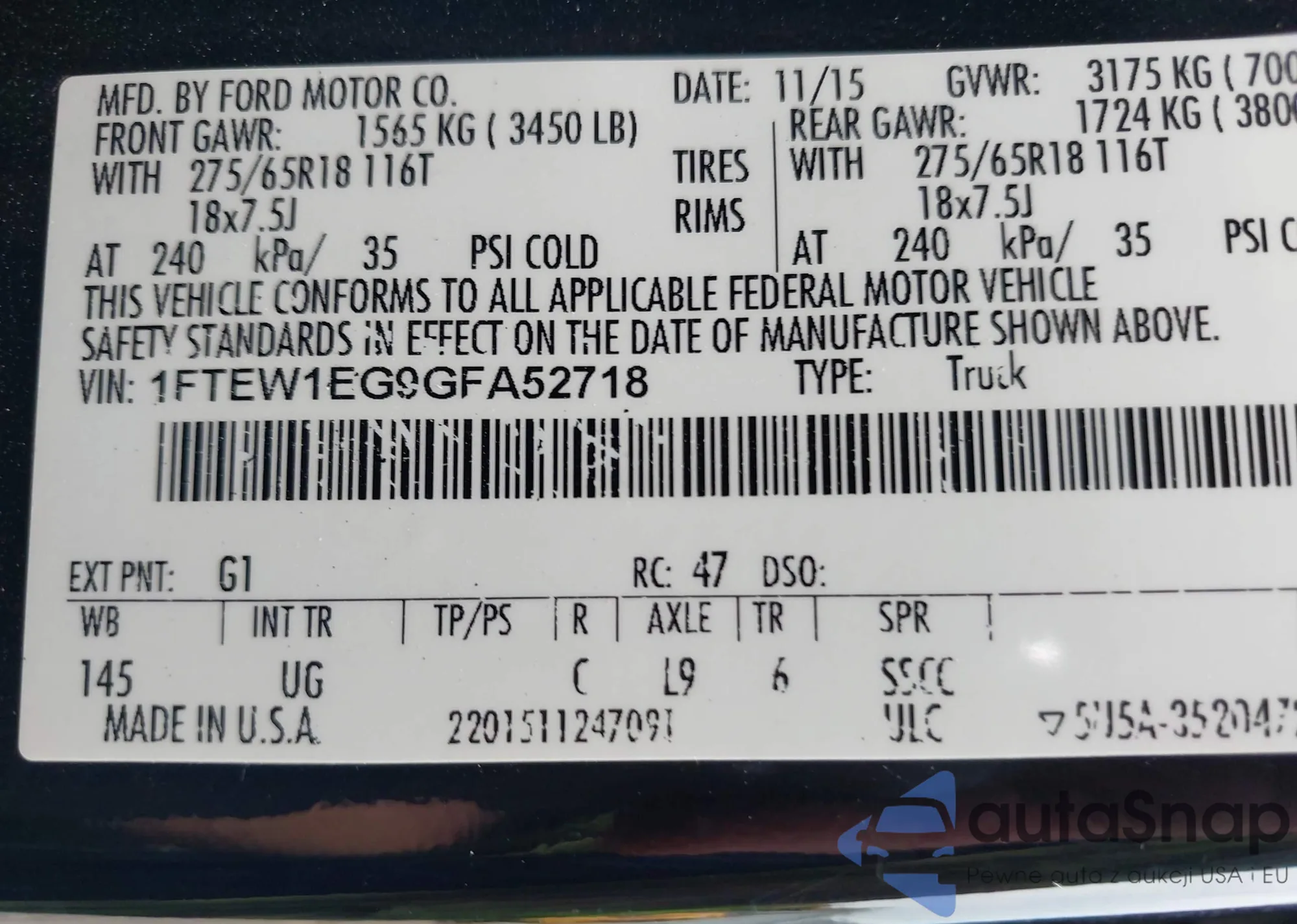 VIN: 1FTEW1EG9GFA52718