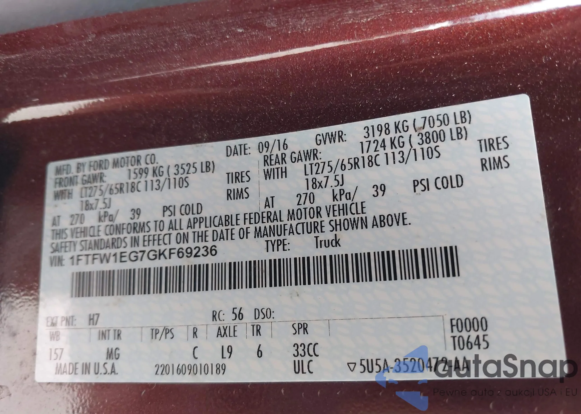 VIN: 1FTFW1EG7GKF69236