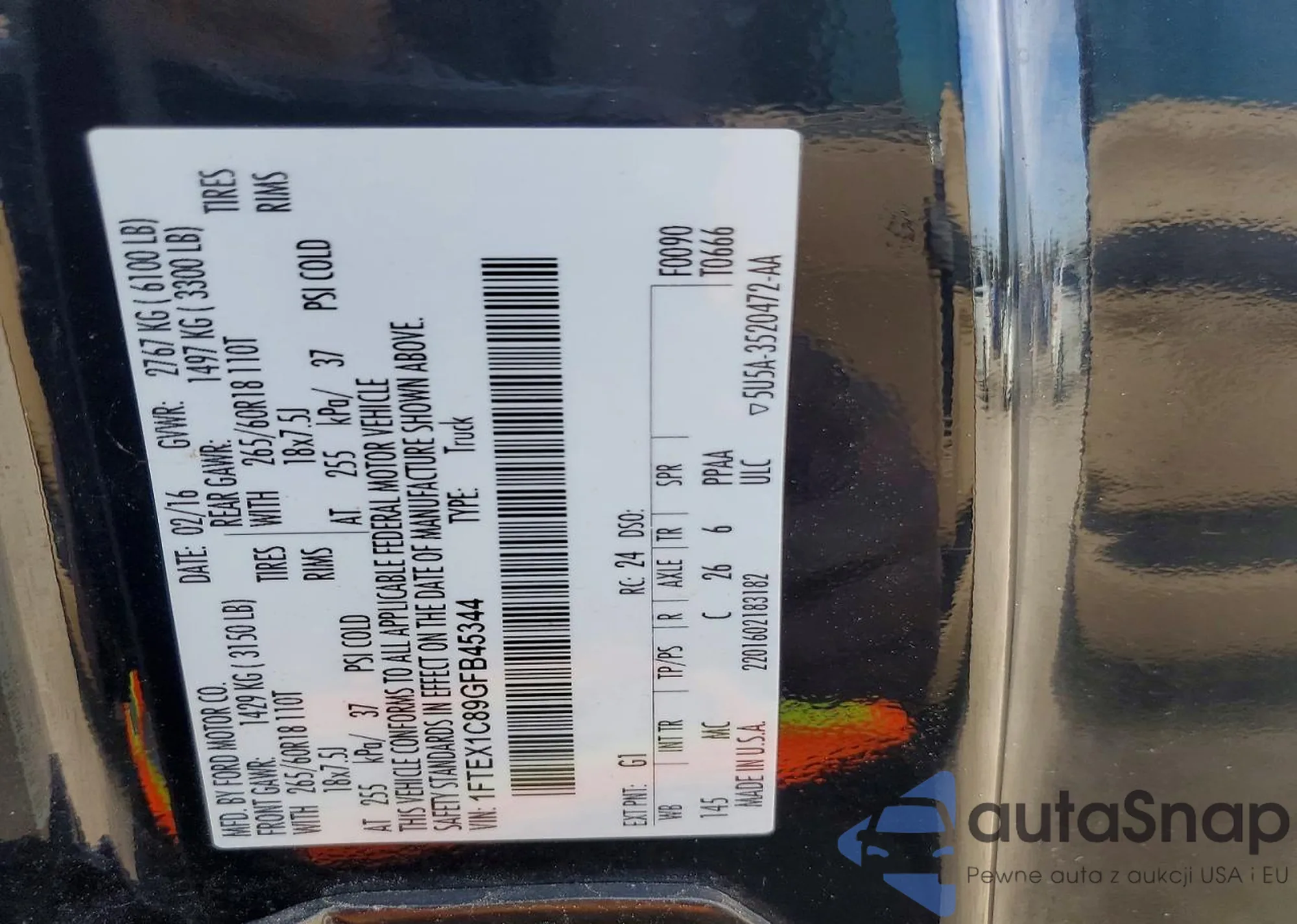 Ford F-150 2016 – Vehicle History (Sold at COPART)