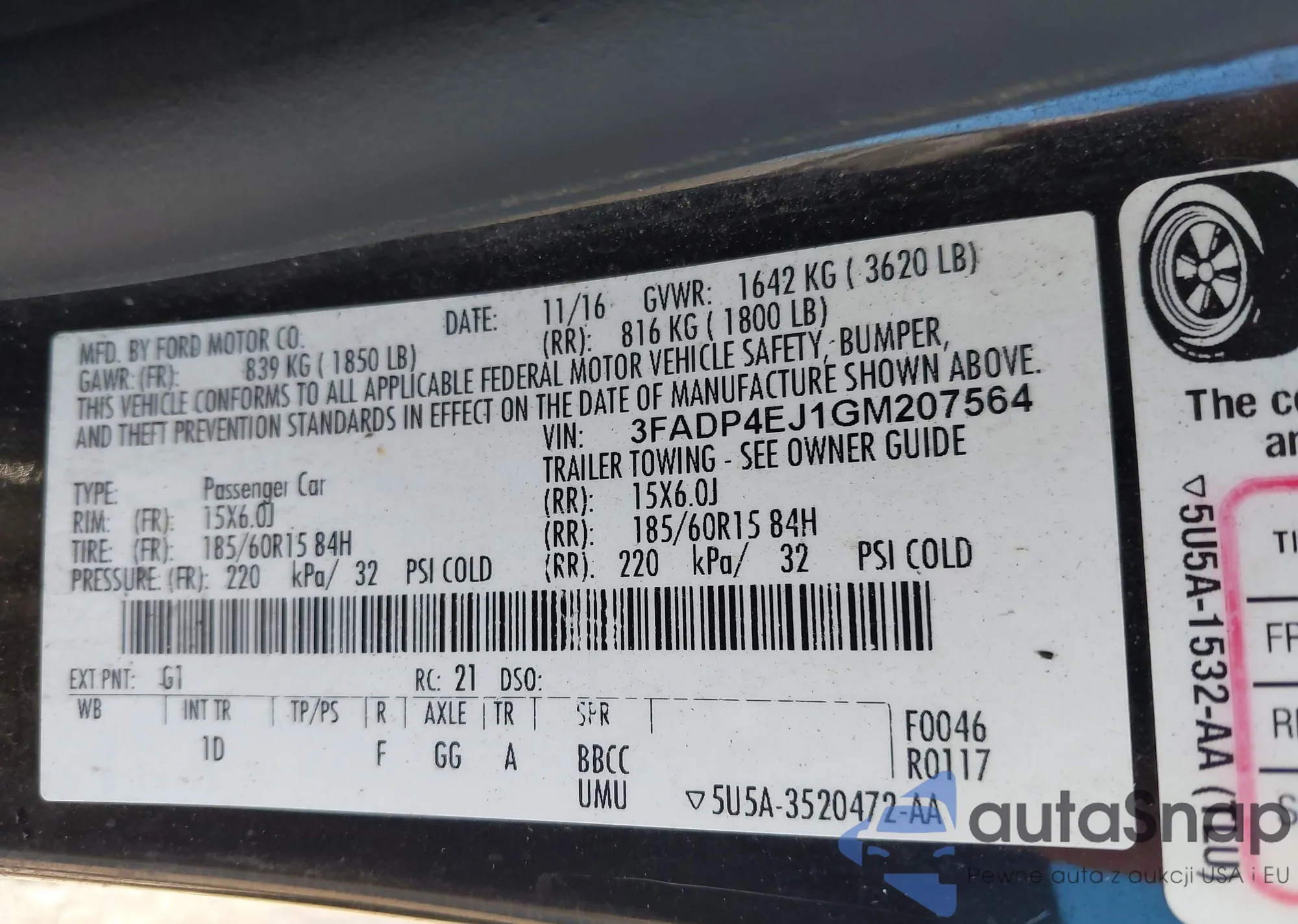 The car Ford Fiesta 2016 (VIN 3FADP4EJ1GM207564) has not been auctioned before. The documents are clean, and the mileage matches or is below the market average. Sold by an insurance company – we recommend purchase. Delivery to the port will take approx. 6–8 weeks.