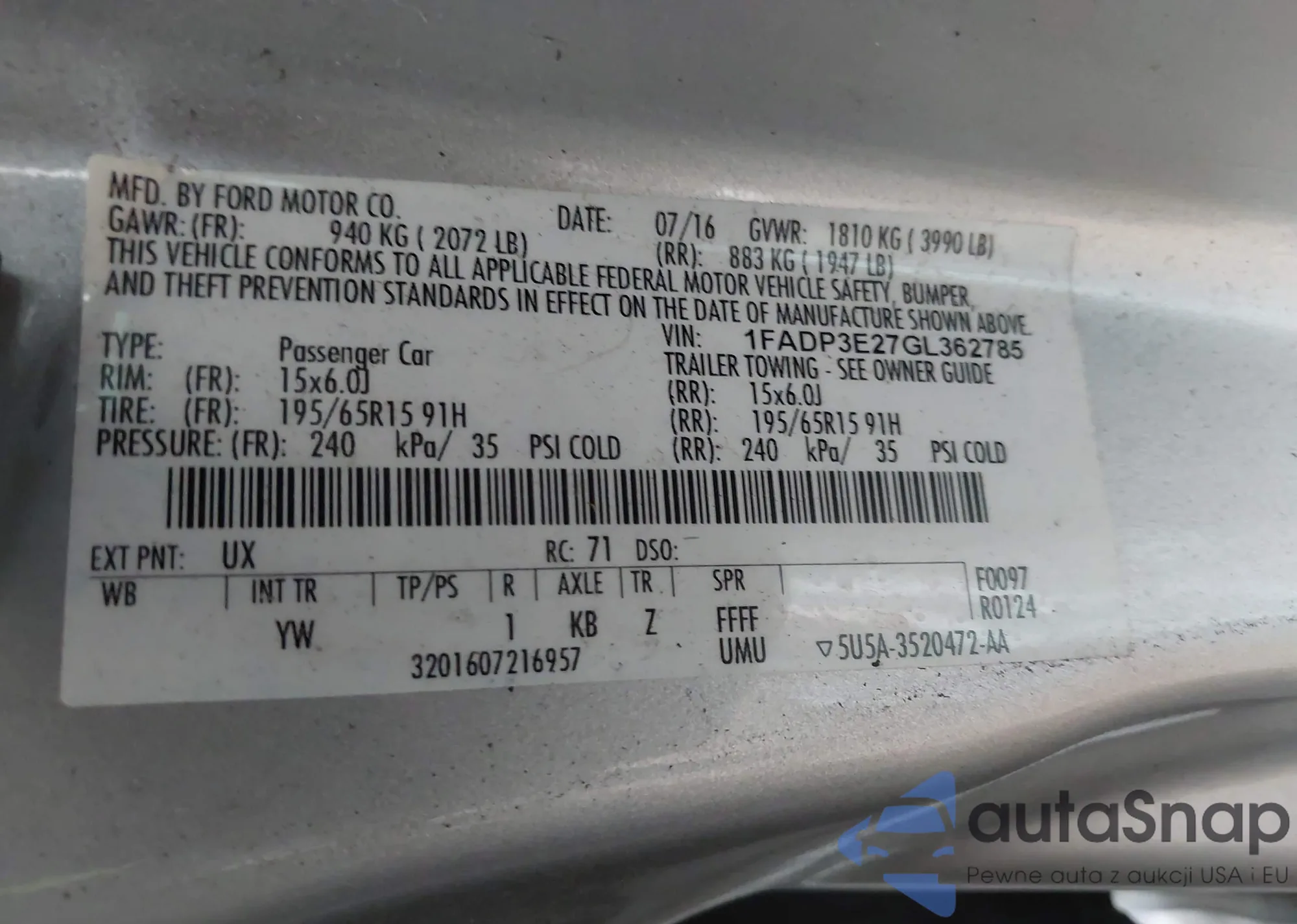 VIN: 1FADP3E27GL362785