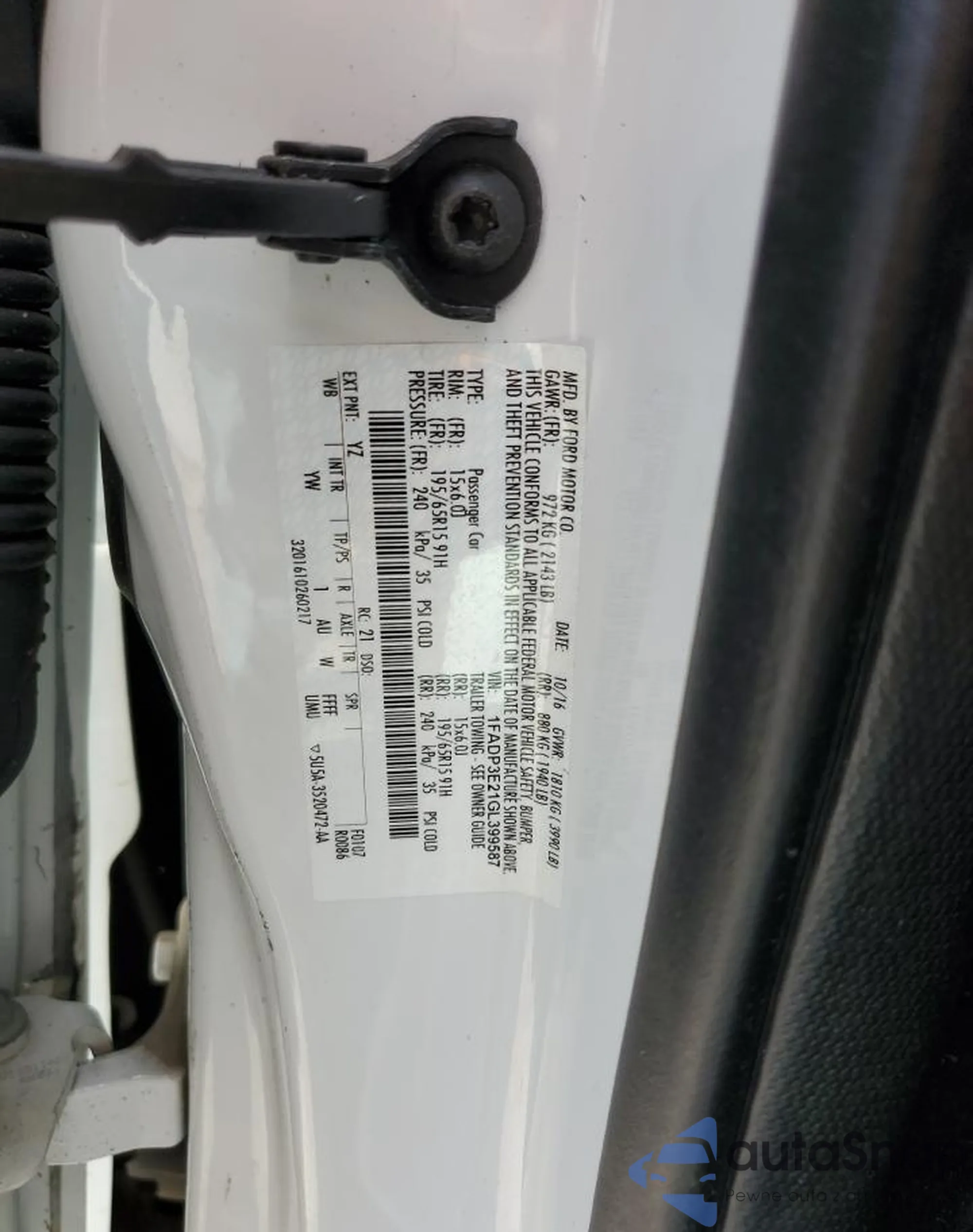 VIN: 1FADP3E21GL399587