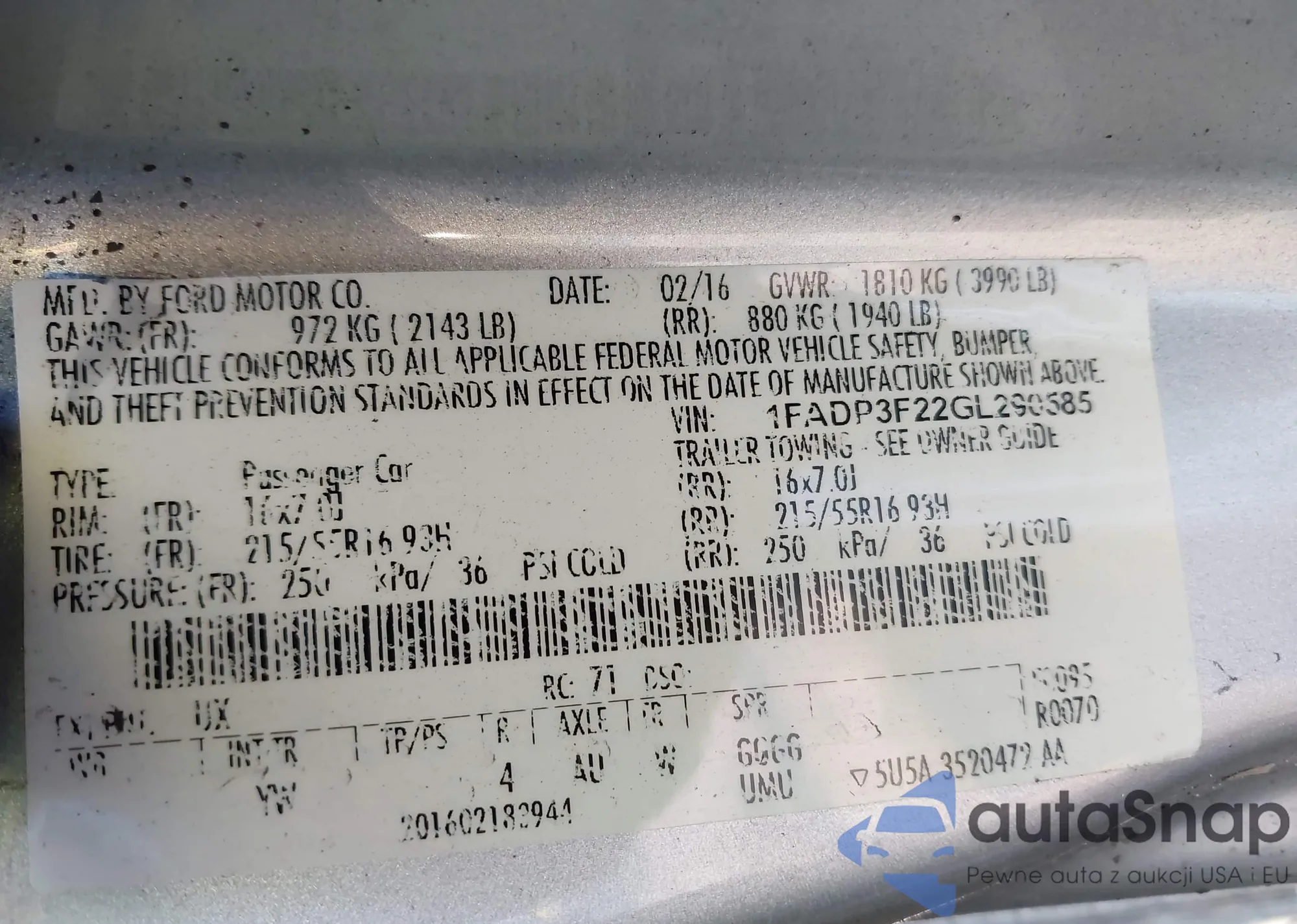 VIN: 1FADP3F22GL290585