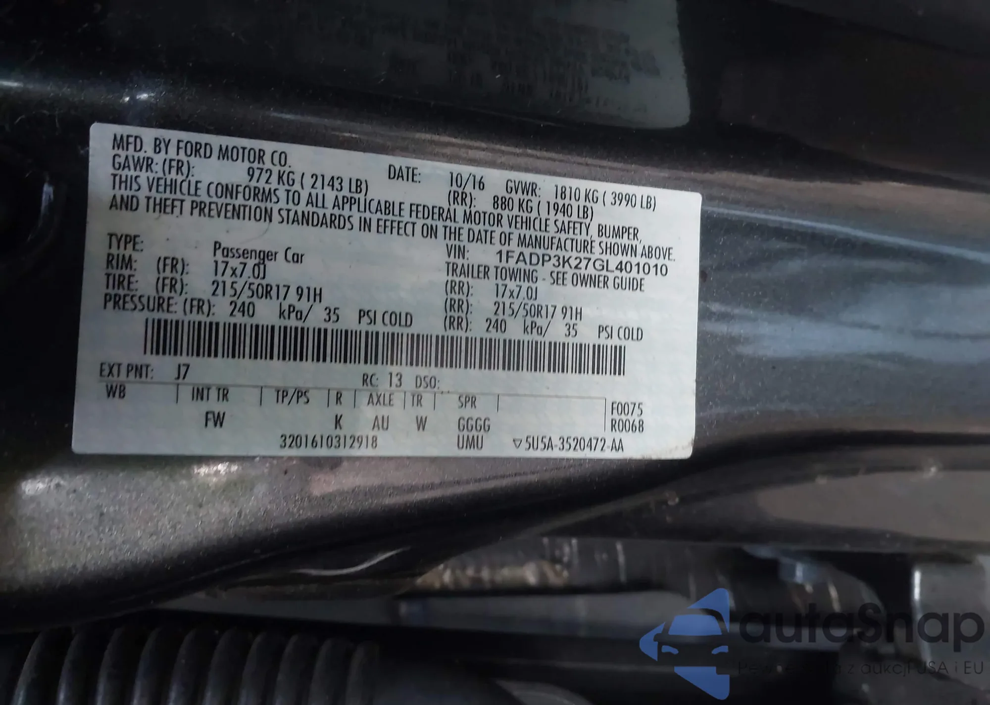 VIN: 1FADP3K27GL401010