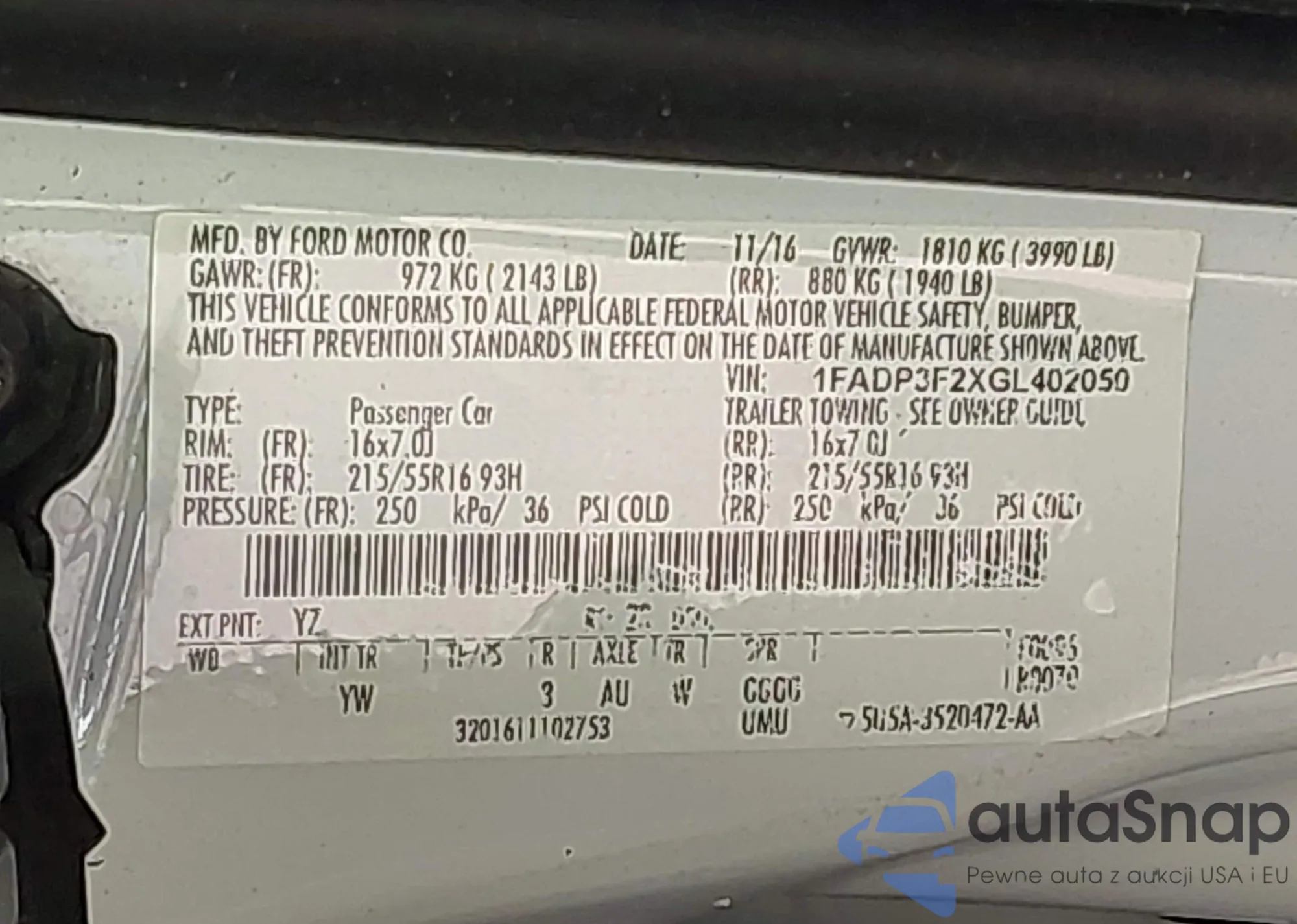 VIN: 1FADP3F2XGL402050