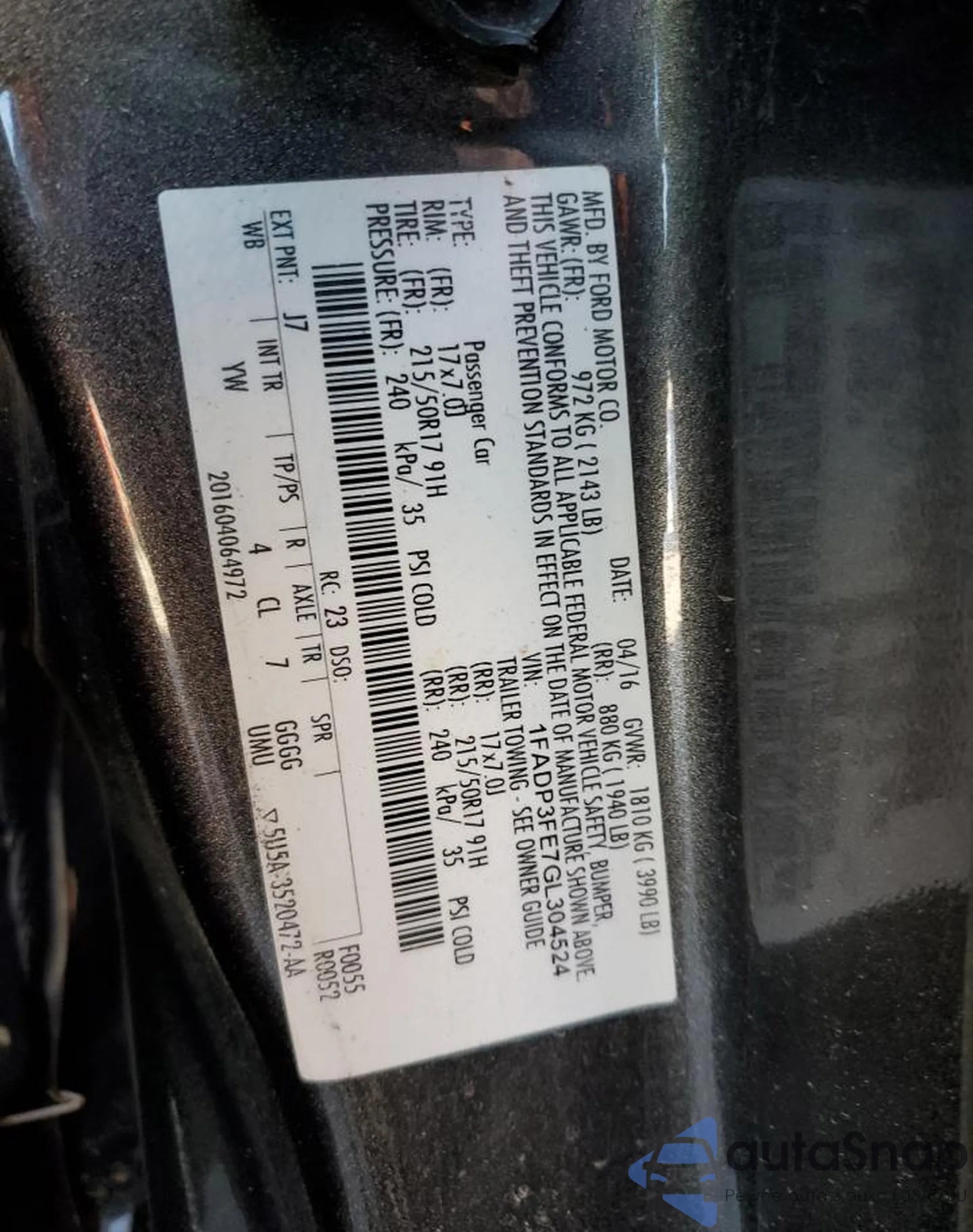 The car Ford Focus 2016 (VIN 1FADP3FE7GL304524) has not been auctioned before. The documents are clean, and the mileage matches or is below the market average. Sold by an insurance company – we recommend purchase. Delivery to the port will take approx. 6–8 weeks.