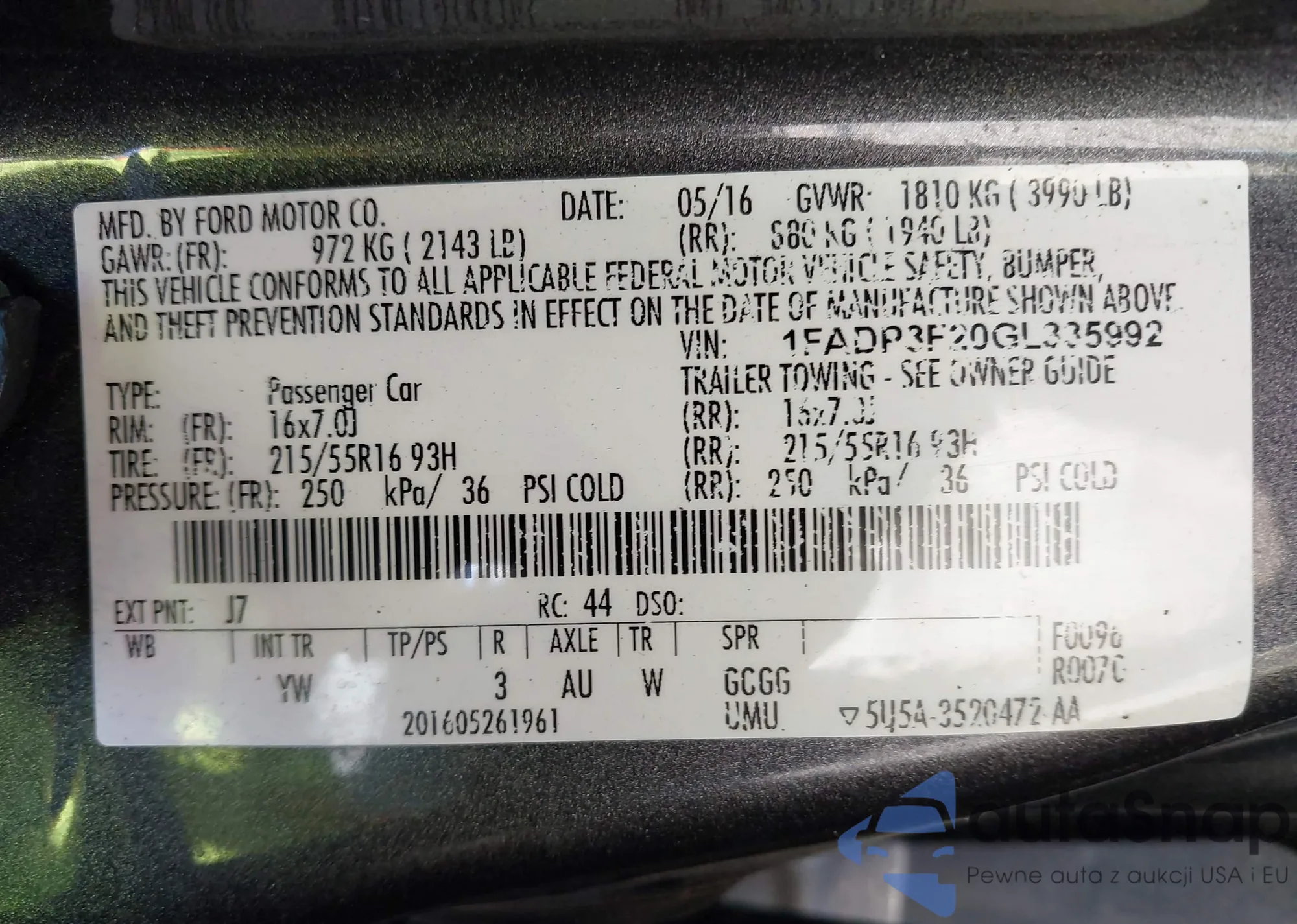 VIN: 1FADP3F20GL335992