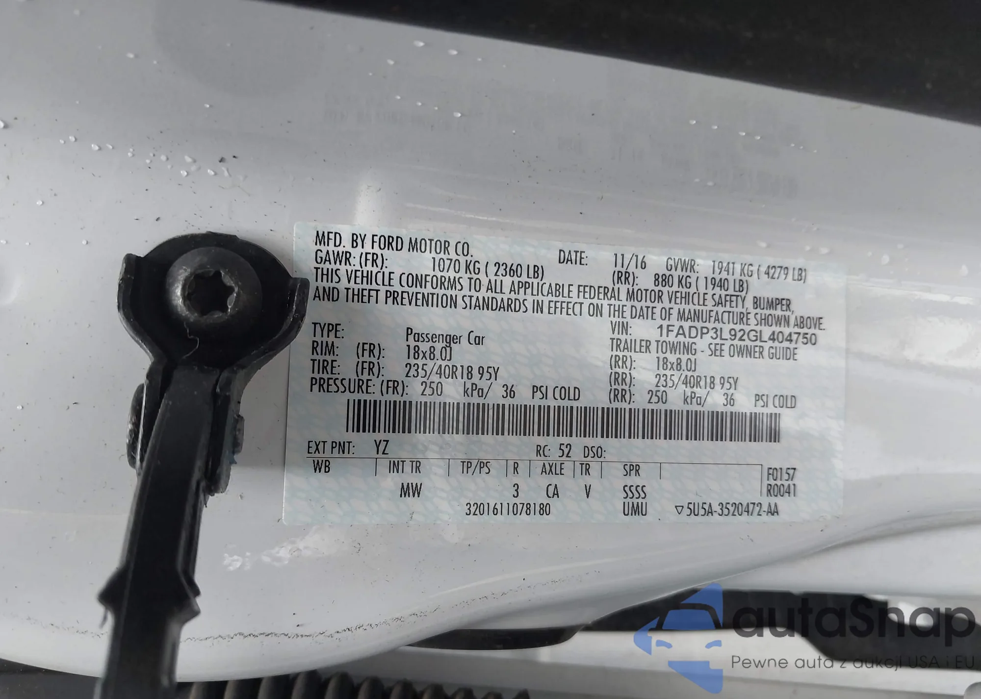The car Ford Focus ST 2016 (VIN 1FADP3L92GL404750) has not been auctioned before. The documents are clean, and the mileage matches or is below the market average. Sold by an insurance company – we recommend purchase. Delivery to the port will take approx. 6–8 weeks.