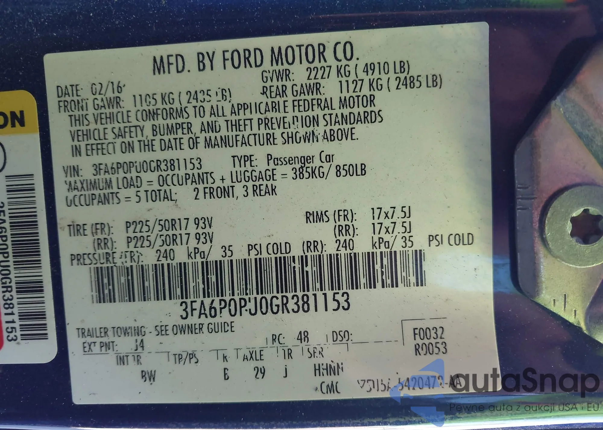 • VIN: 3FA6P0PU0GR381153