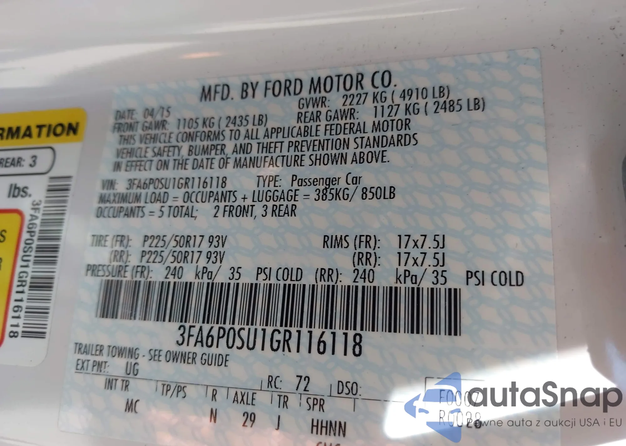 VIN: 3FA6P0SU1GR116118