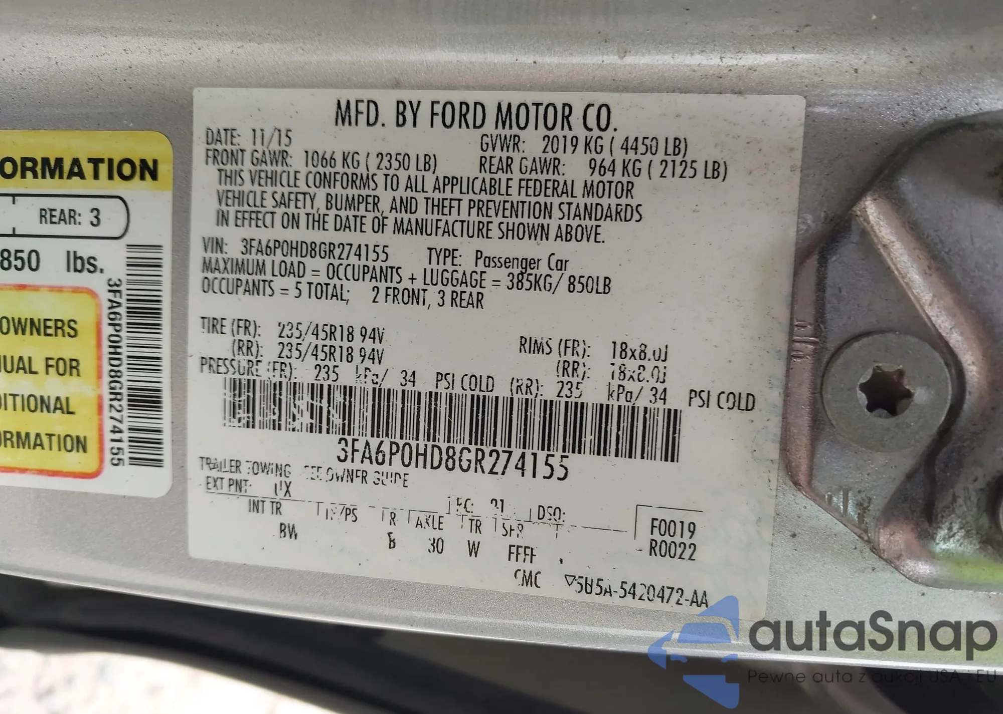 VIN: 3FA6P0HD8GR274155