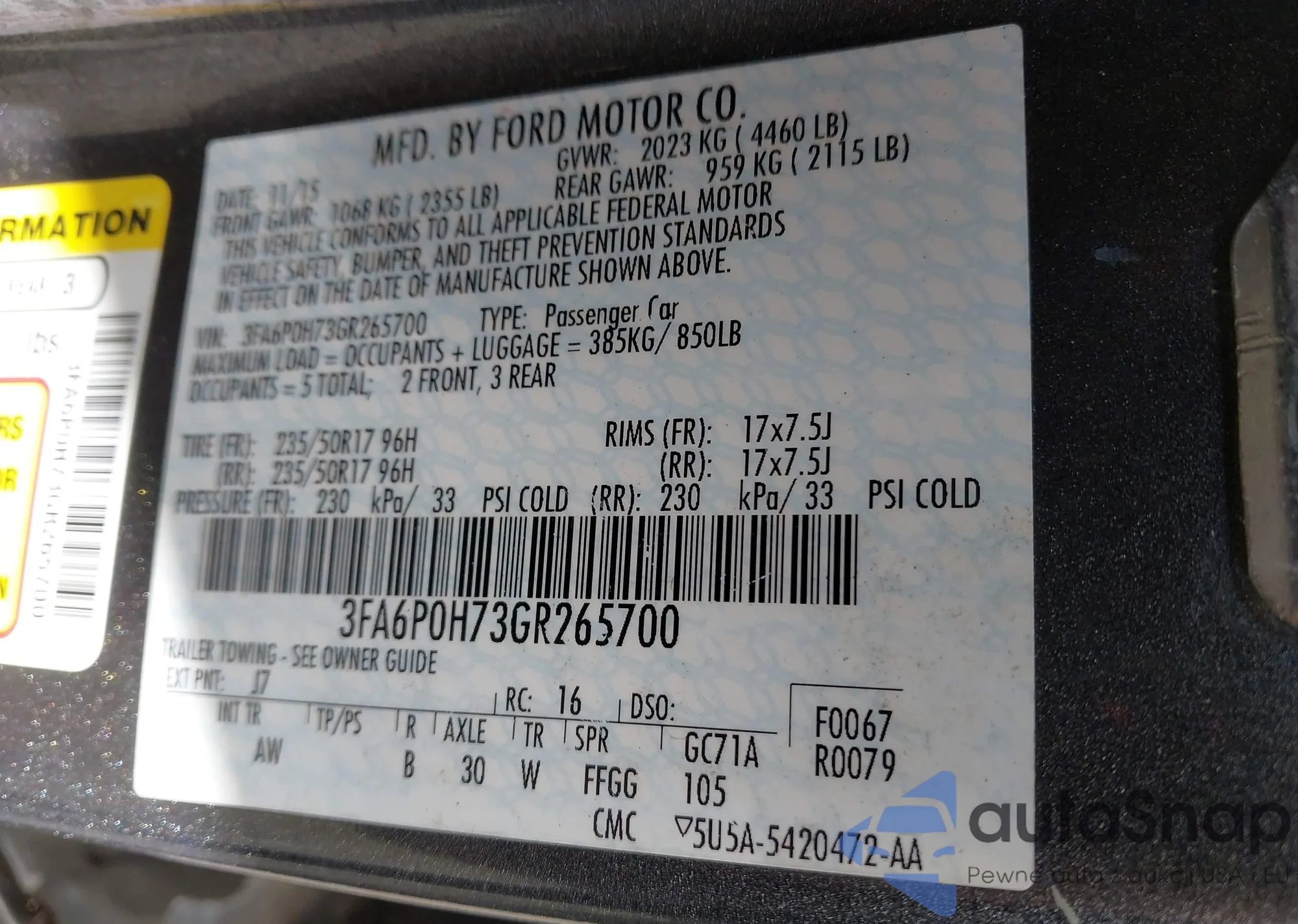 VIN: 3FA6P0H73GR265700