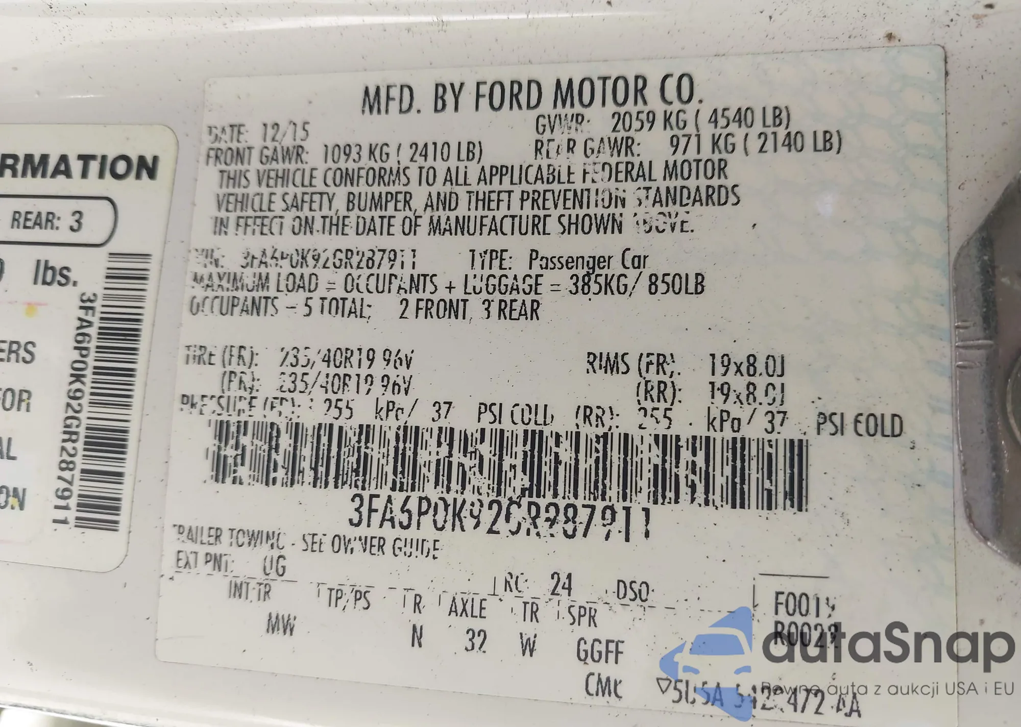 The car Ford Fusion 2016 (VIN 3FA6P0K92GR287911) has already been auctioned 1 times and/or is sold by an unverified seller. We recommend checking the Carfax report and confirming registration possibilities before purchase.
