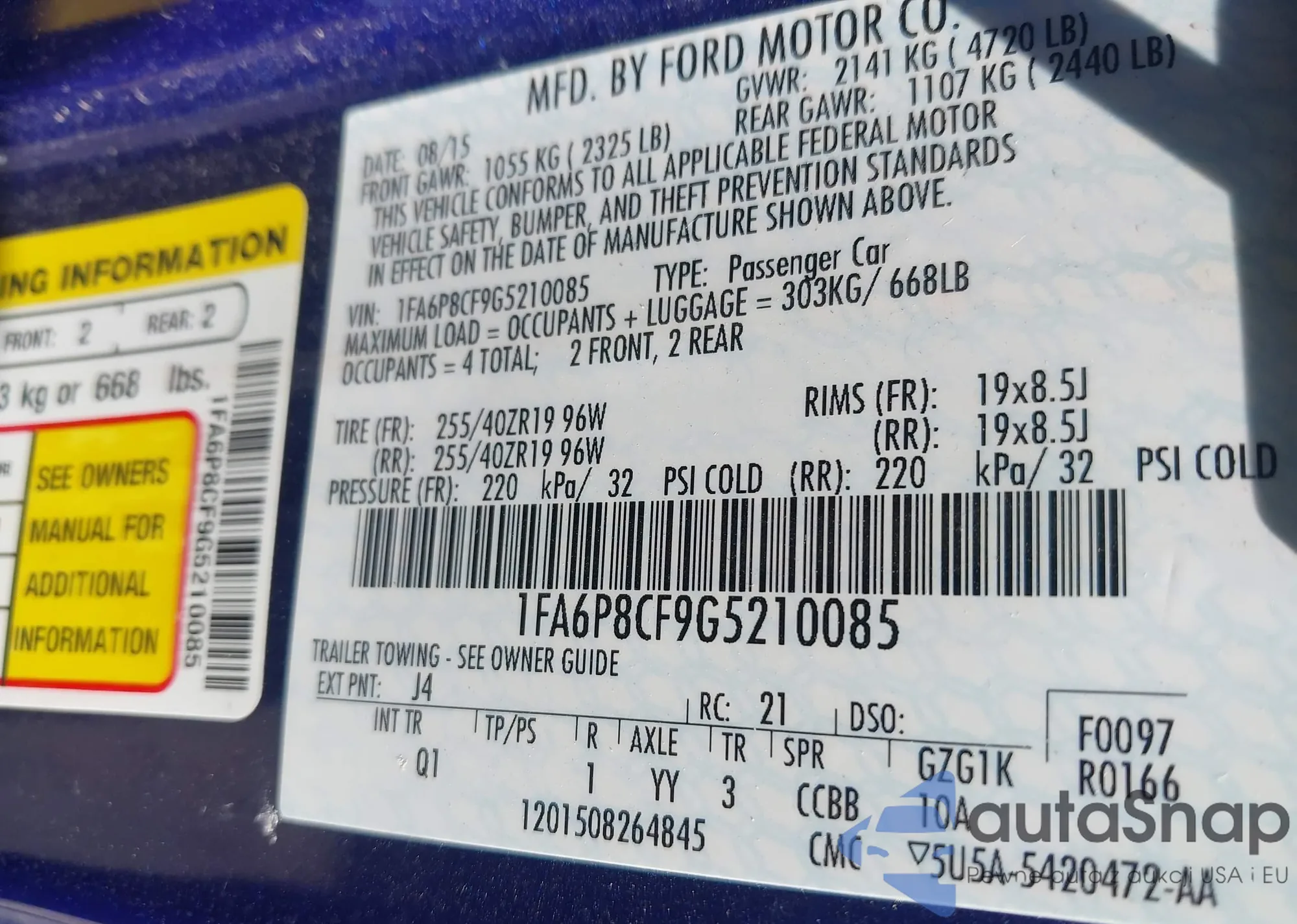 VIN: 1FA6P8CF9G5210085