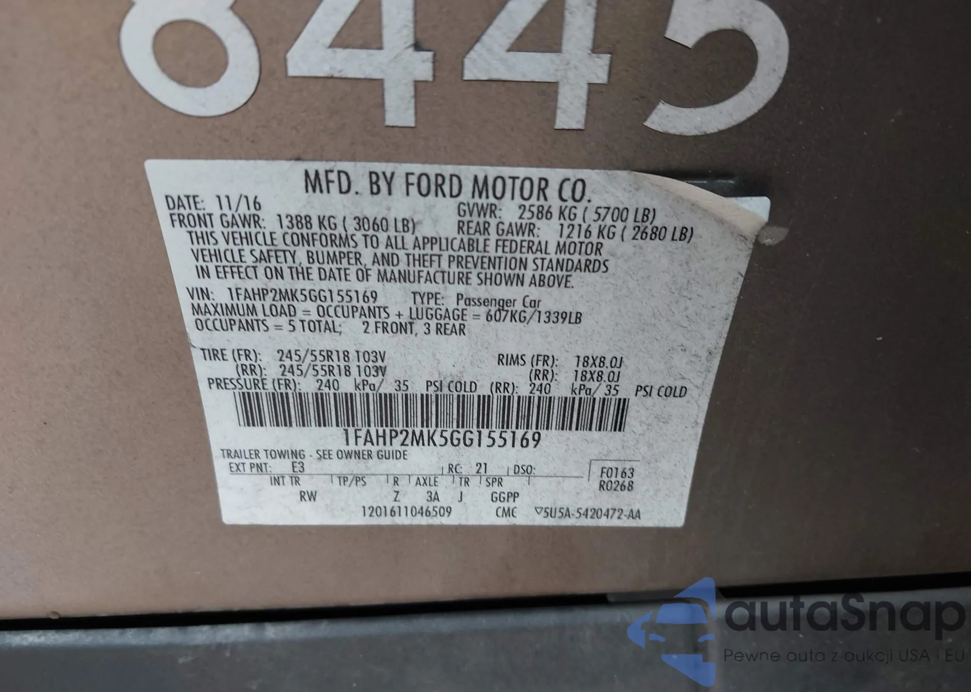 VIN: 1FAHP2MK5GG155169