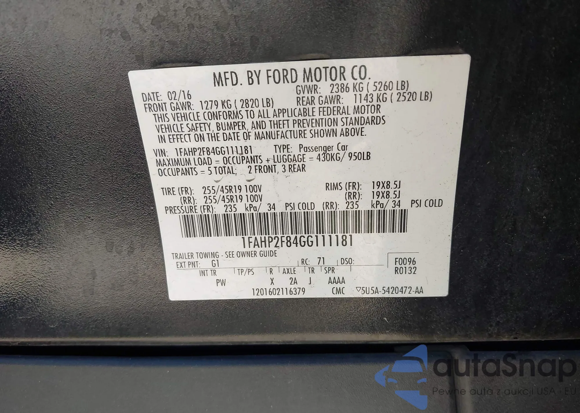 VIN: 1FAHP2F84GG111181