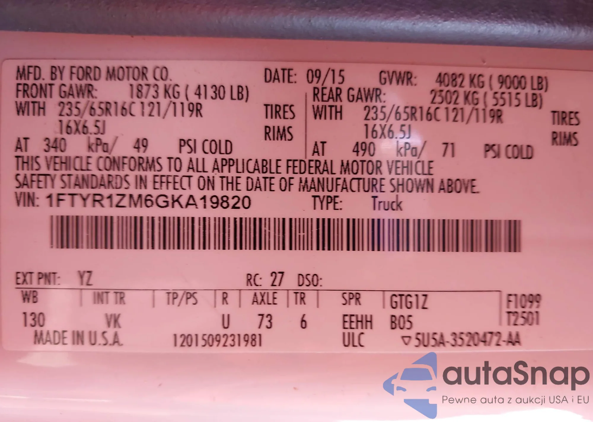 The car Ford Transit 2016 (VIN 1FTYR1ZM6GKA19820) has not been auctioned before. The documents are clean, and the mileage matches or is below the market average. Sold by an insurance company – we recommend purchase. Delivery to the port will take approx. 6–8 weeks.