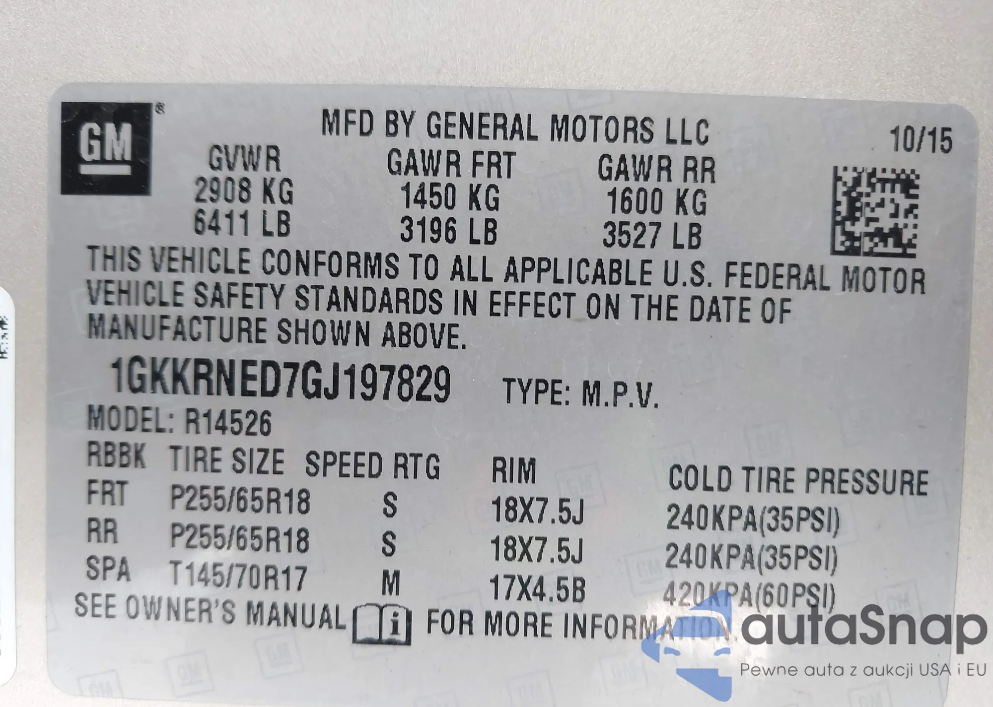 VIN: 1GKKRNED7GJ197829