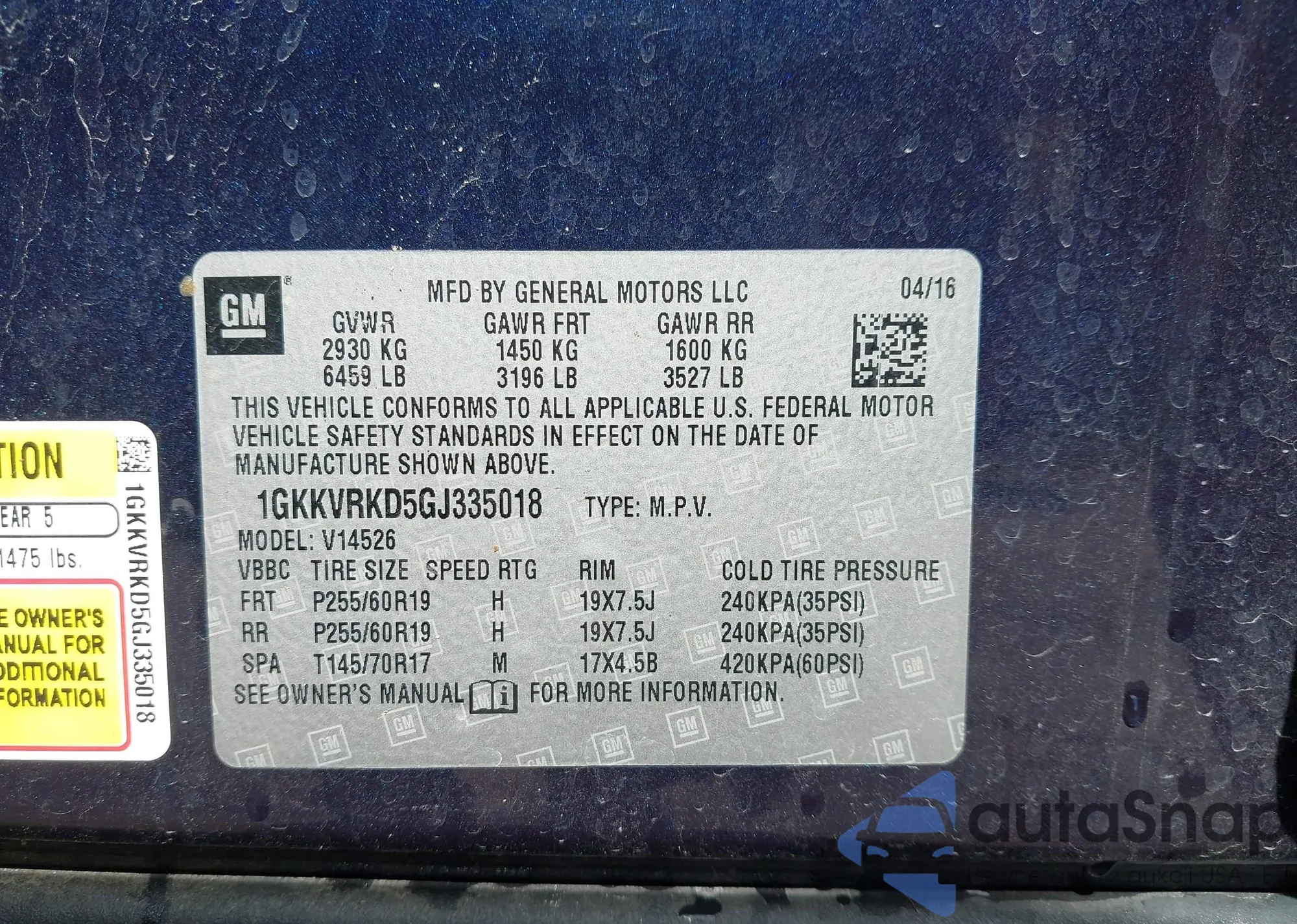 VIN: 1GKKVRKD5GJ335018