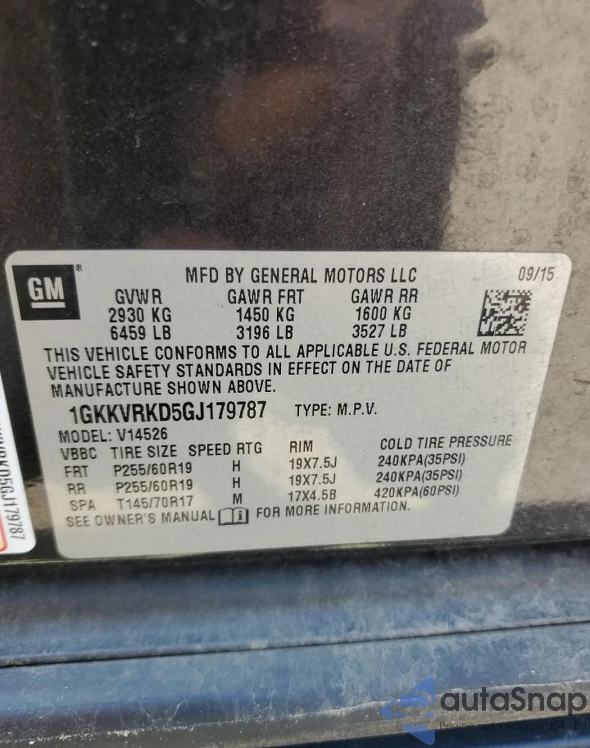 VIN: 1GKKVRKD5GJ179787