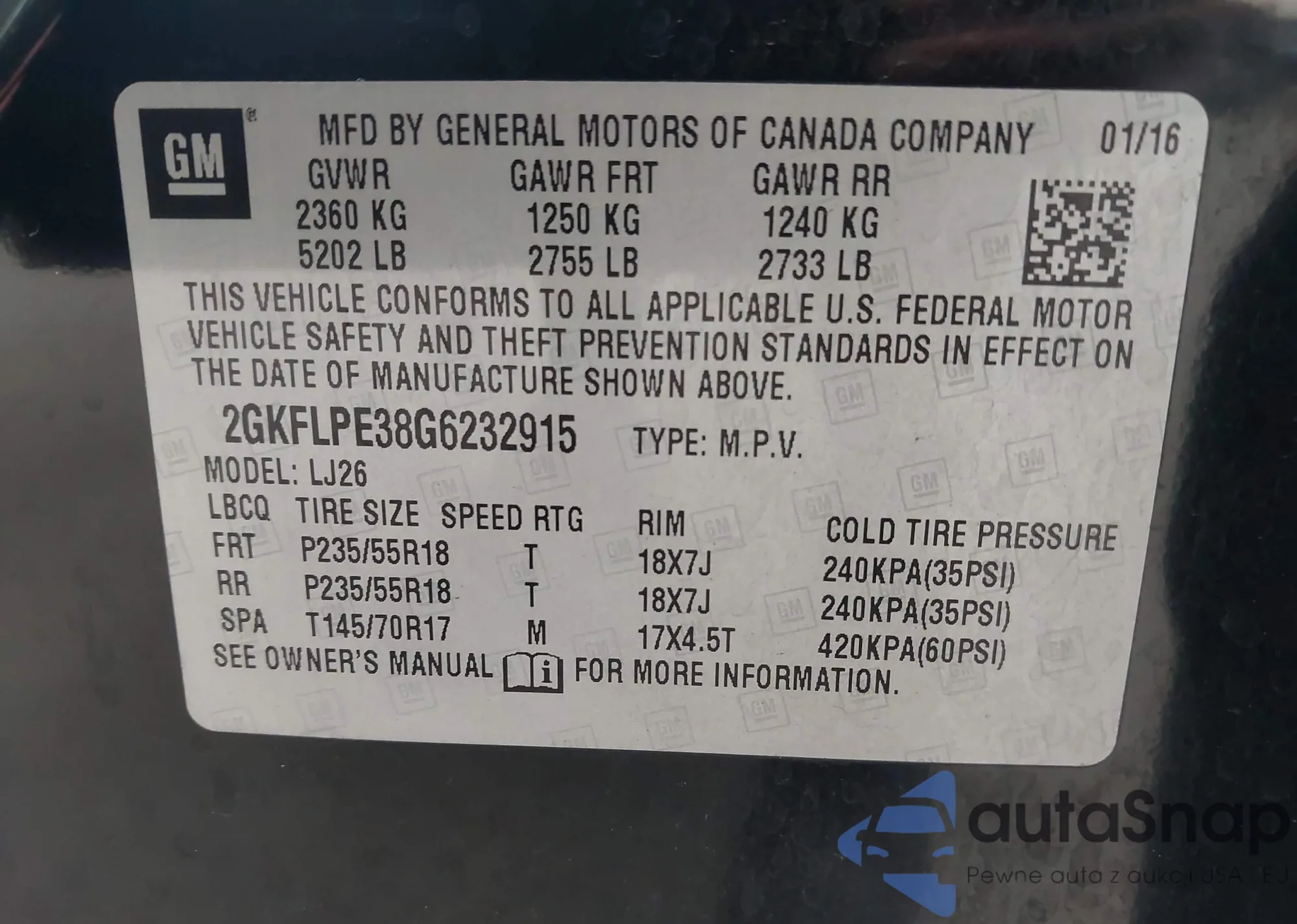 VIN: 2GKFLPE38G6232915