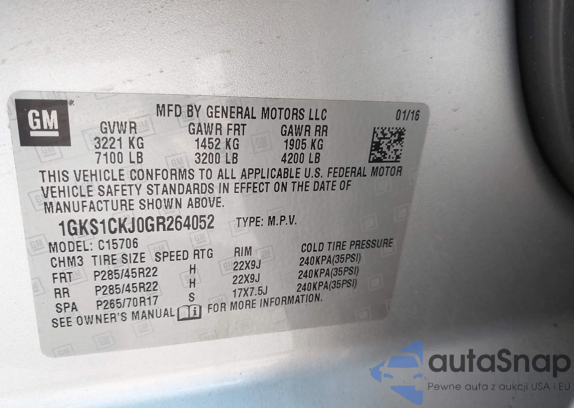 VIN: 1GKS1CKJ0GR264052