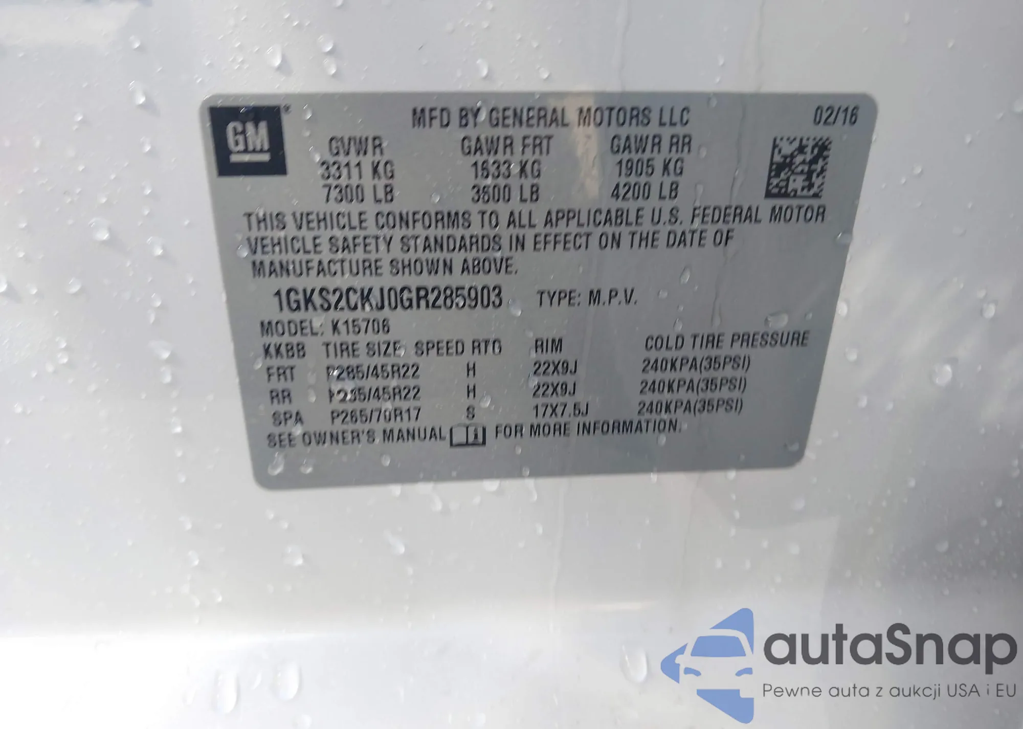VIN: 1GKS2CKJ0GR285903