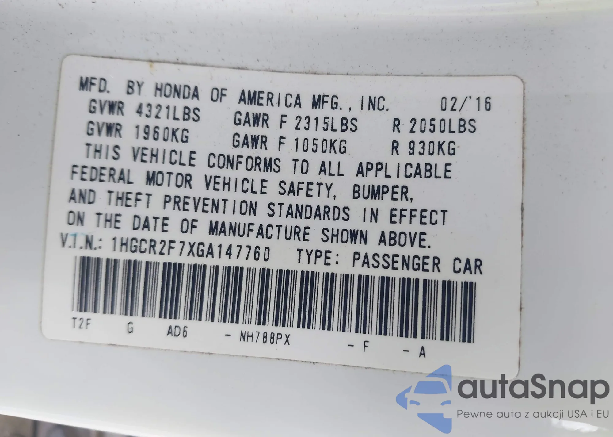 VIN: 1HGCR2F7XGA147760
