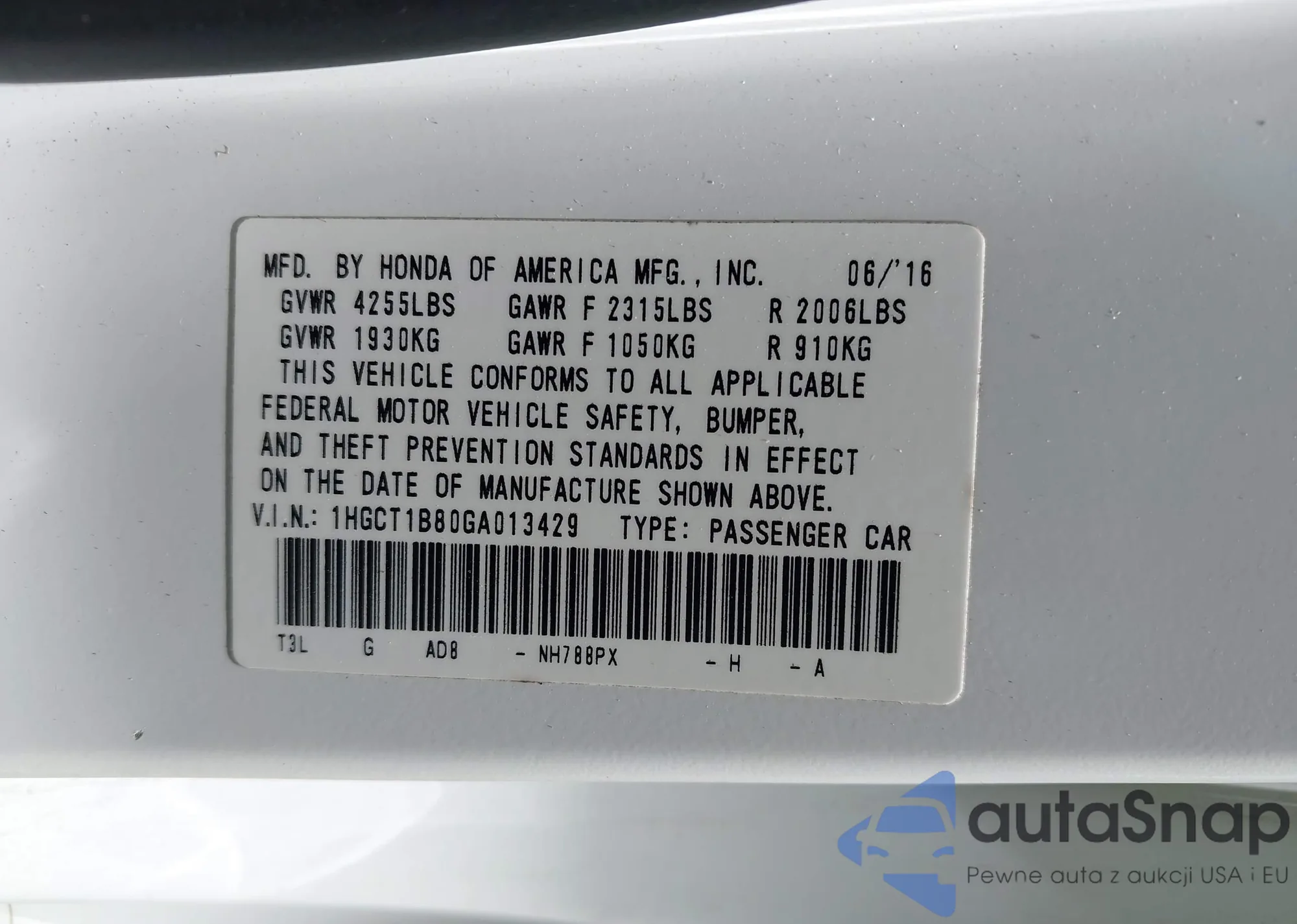 VIN: 1HGCT1B80GA013429