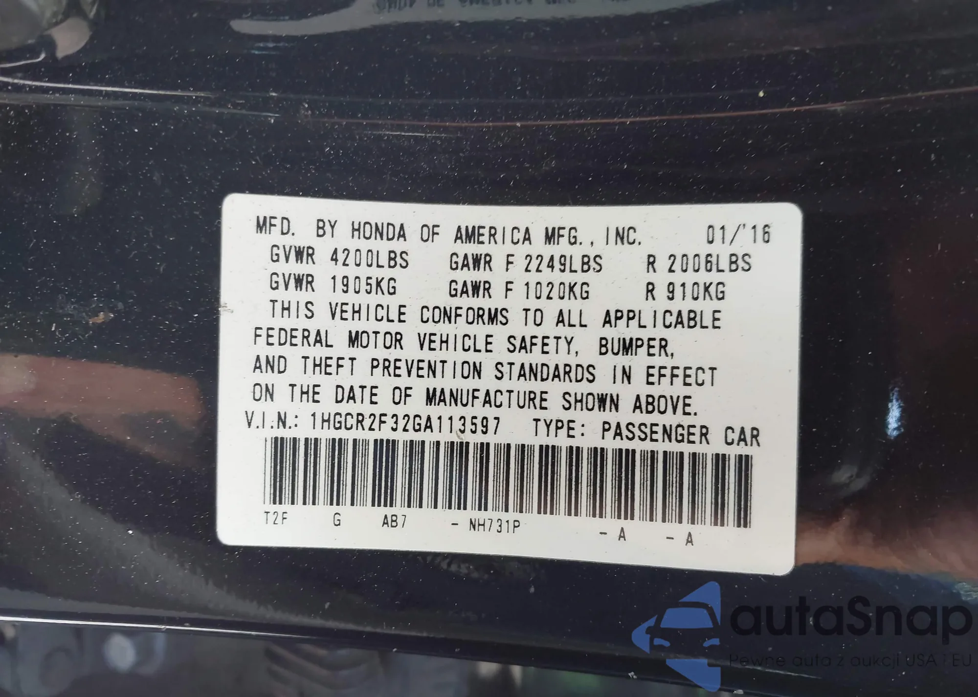VIN: 1HGCR2F32GA113597