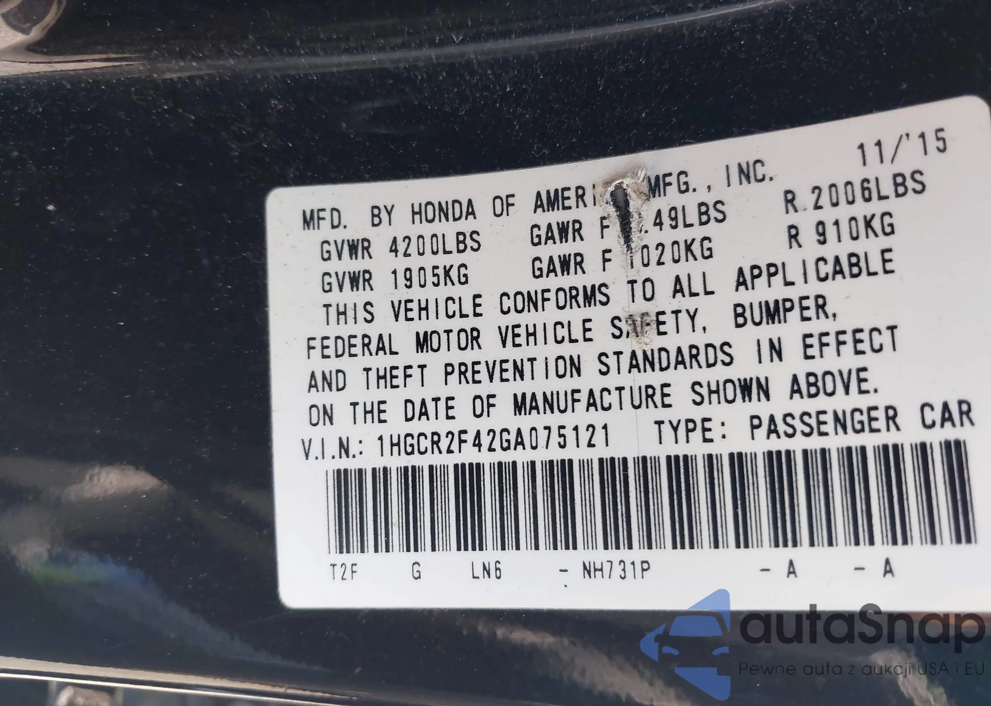The car Honda Accord 2016 (VIN 1HGCR2F42GA075121) has already been auctioned 1 times and/or is sold by an unverified seller. We recommend checking the Carfax report and confirming registration possibilities before purchase.