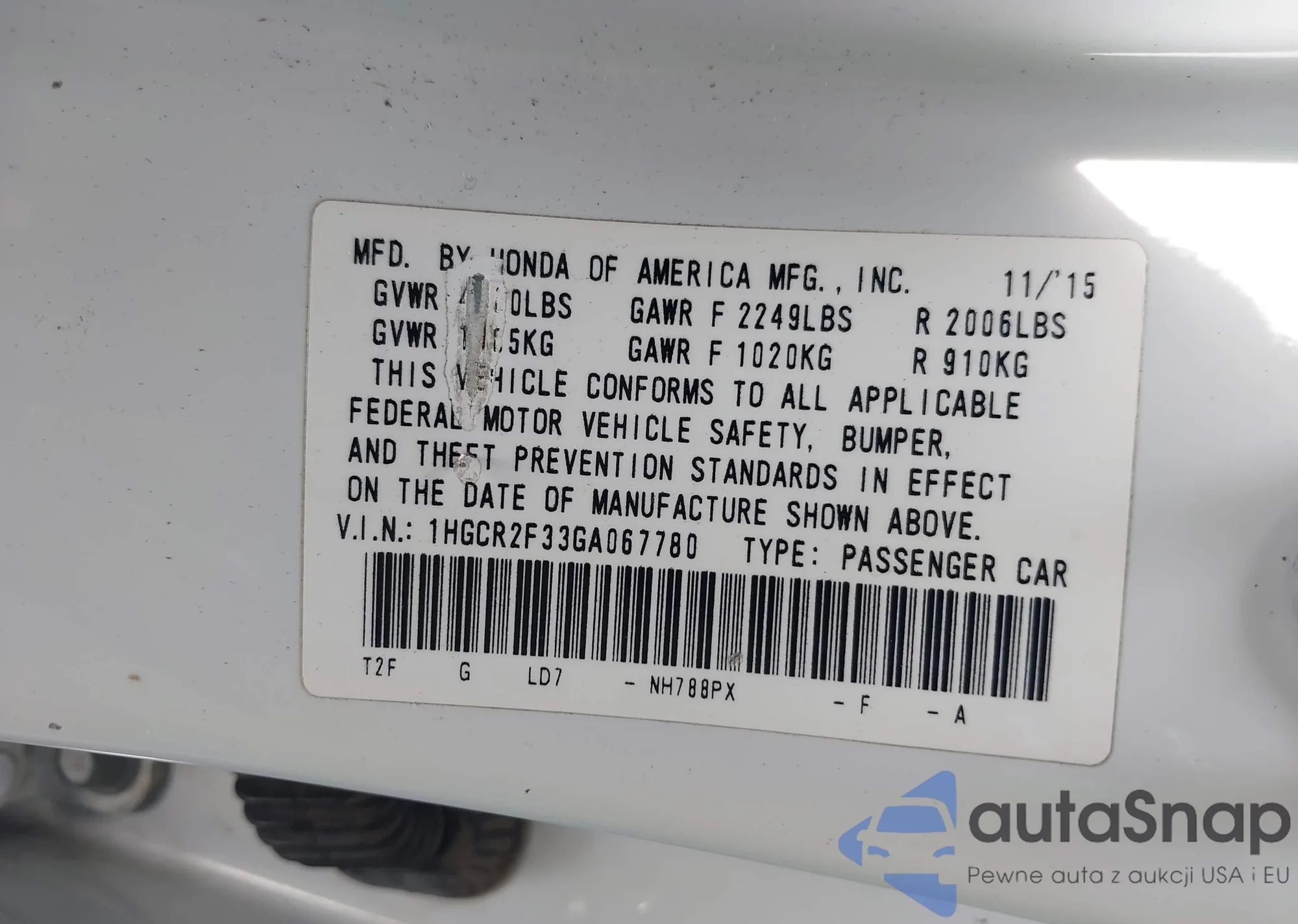 VIN: 1HGCR2F33GA067780