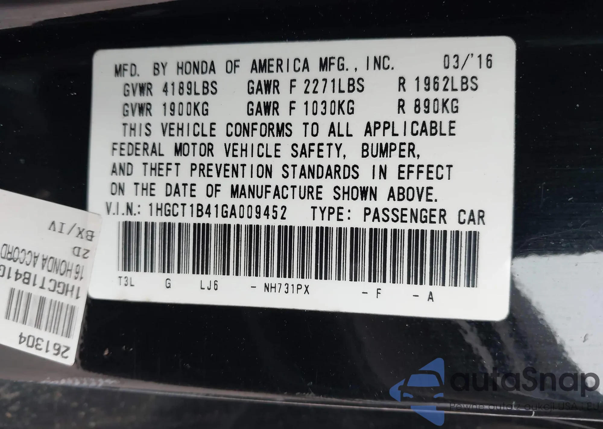 • VIN: 1HGCT1B41GA009452
