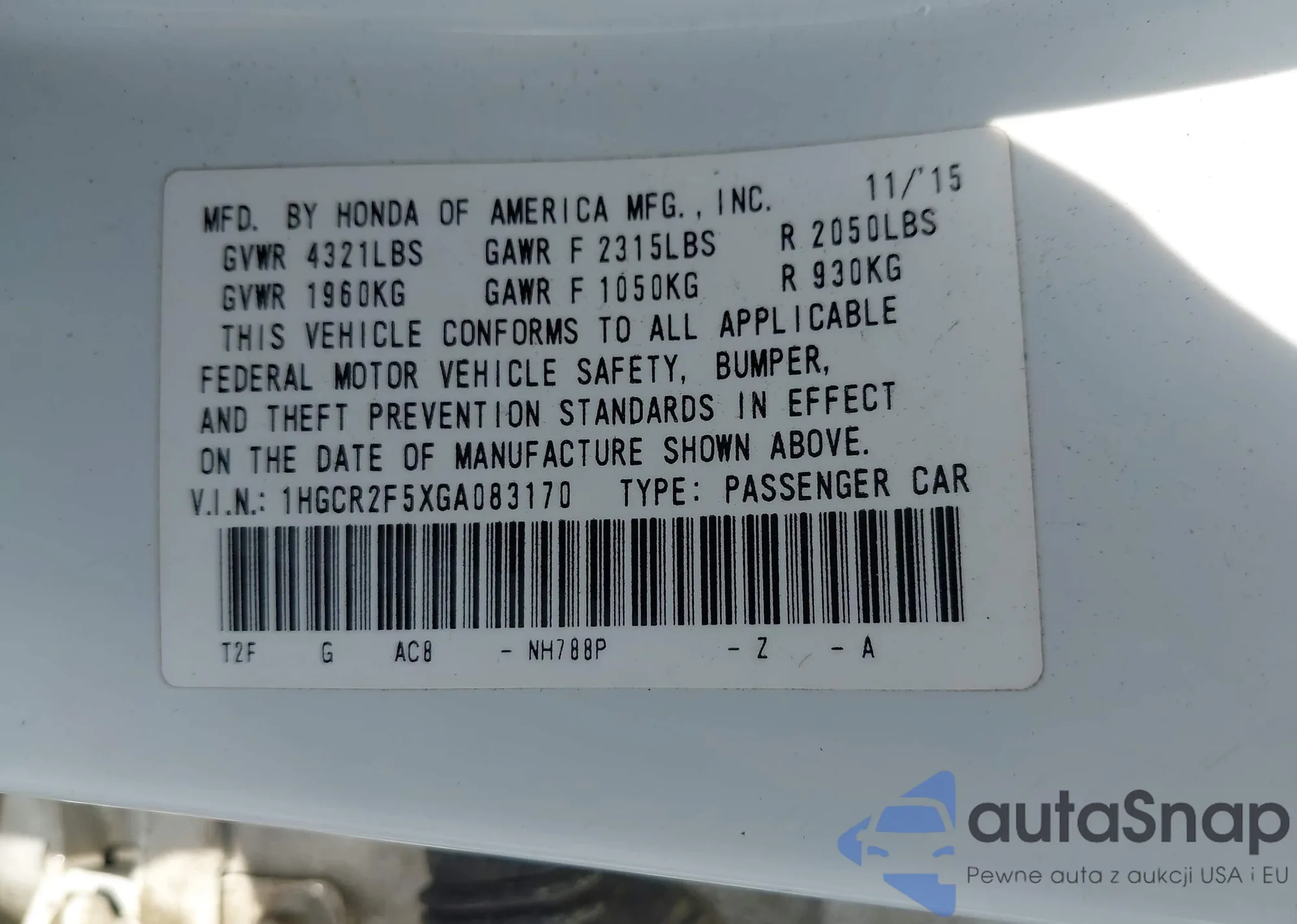 VIN: 1HGCR2F5XGA083170